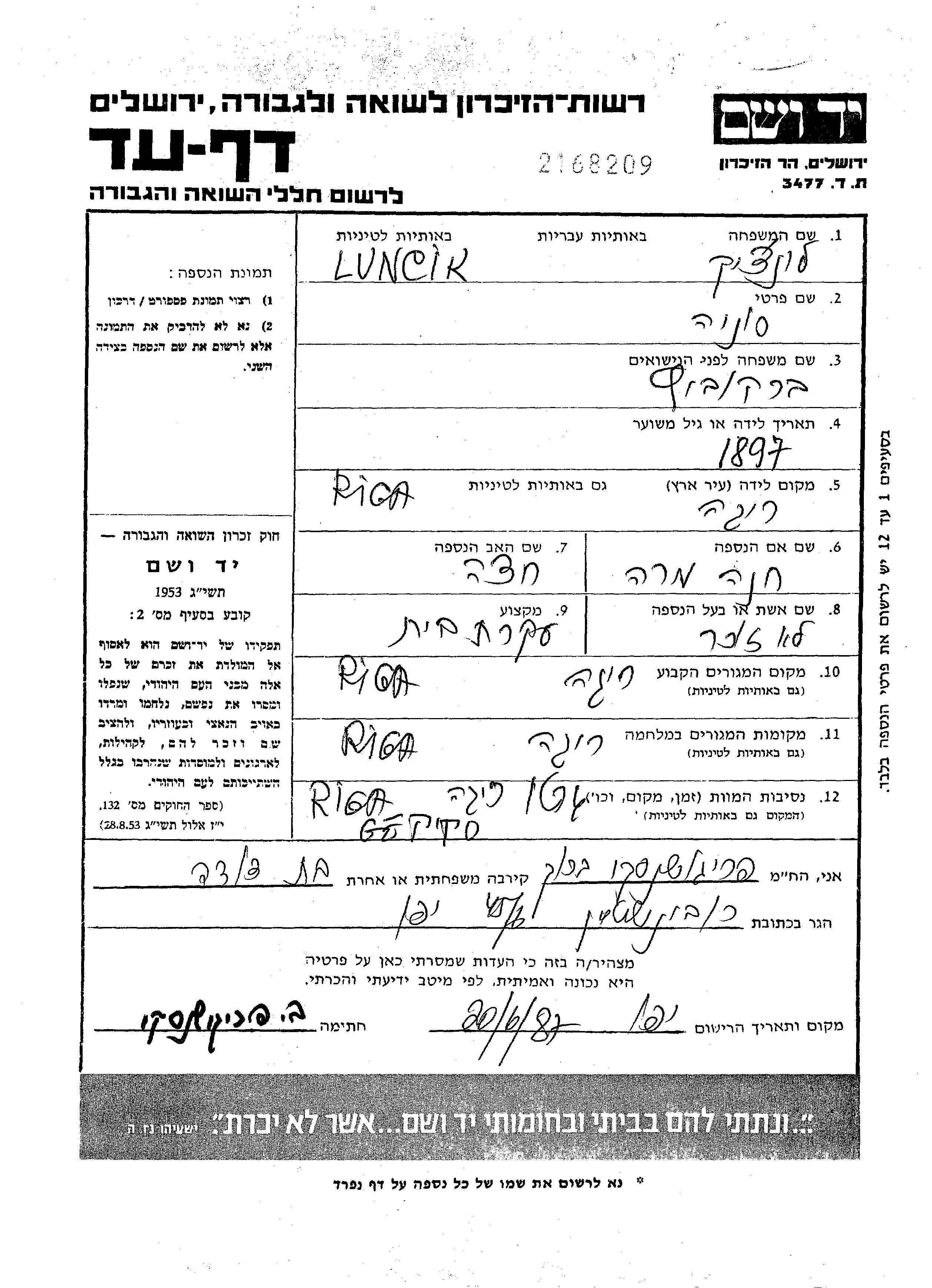סוניה Luncik לבית Berkovich נולדה בRiga שבלטביה בשנת 1897 לחצה וחנה מרה. היא היתה עקרת בית ונשואה. לפני מלחמת העולם השניה התגוררה בRiga שבלטביה. בזמן המלחמה היא היתה בRiga שבלטביה. סוניה נרצחה בשואה. מקום המוות: Riga שבלטביה.