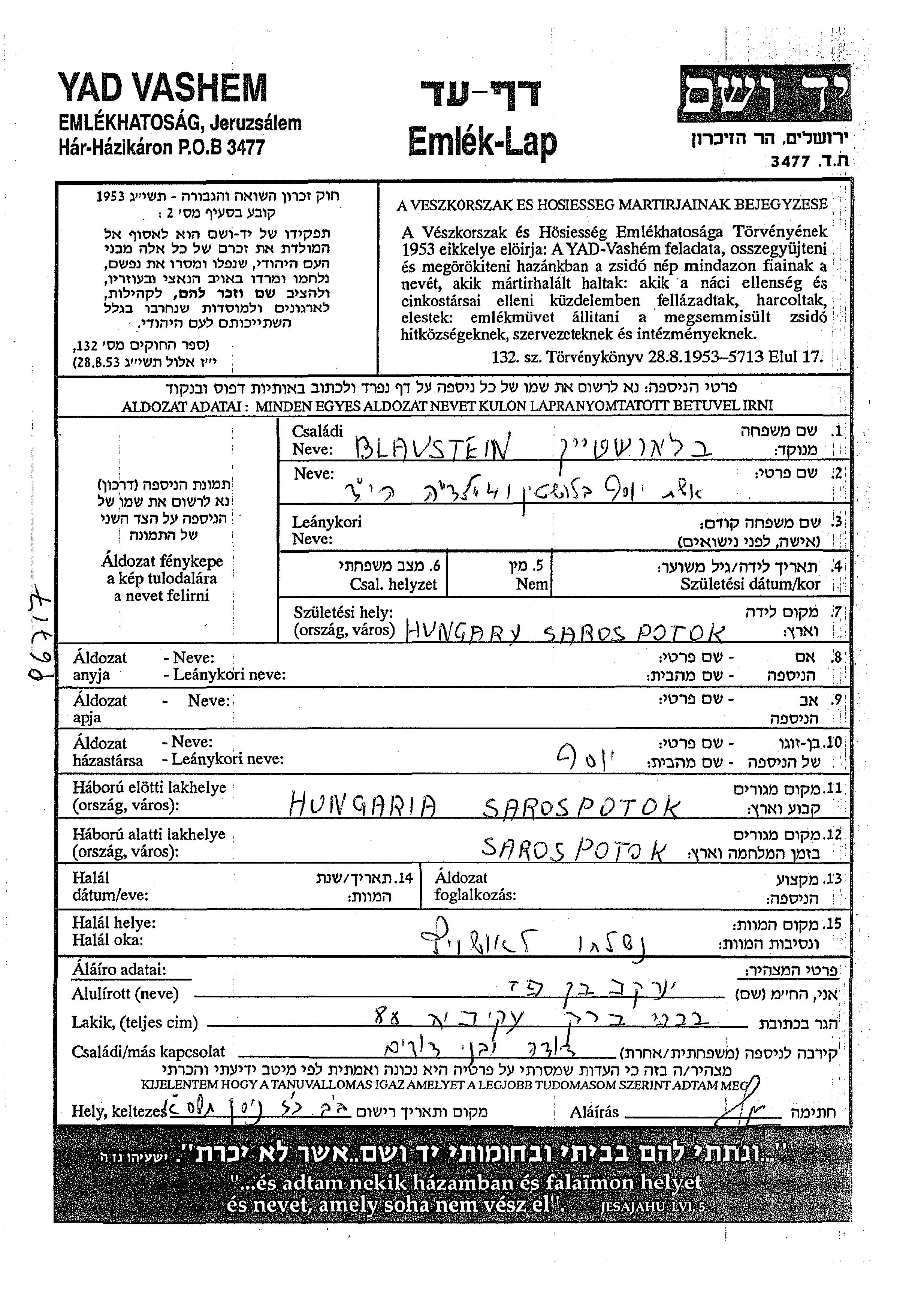 עיר/כפר, גטו/מחנה או אתר רצח או מחוז/אזור או מדינה. שם מקום ניתן לחפש רק בא-ב לטיני.