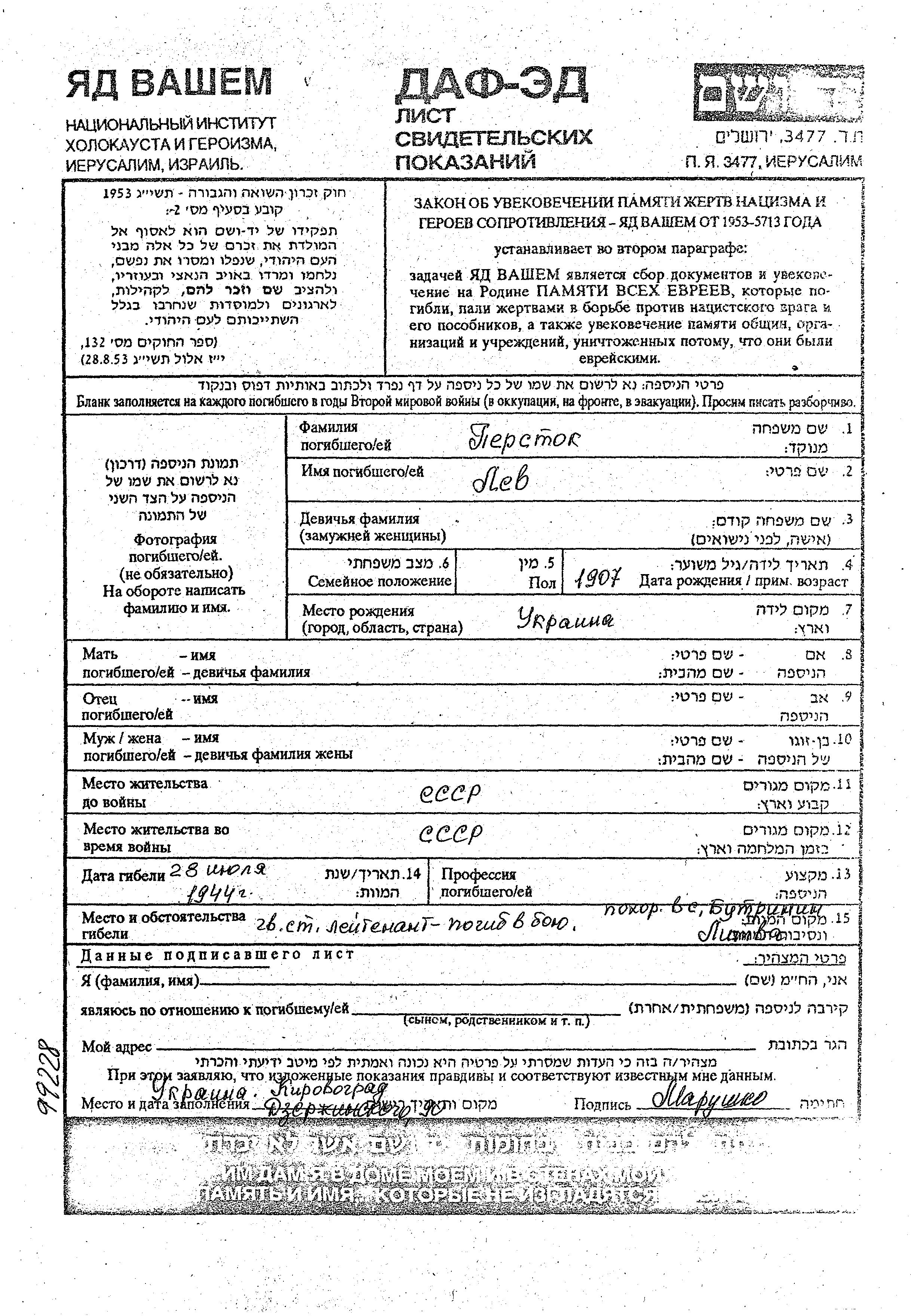 חיפוש שם מוסר דף העד. חיפוש לפי כל שם פרטי, כולל כינוי או שם חיבה