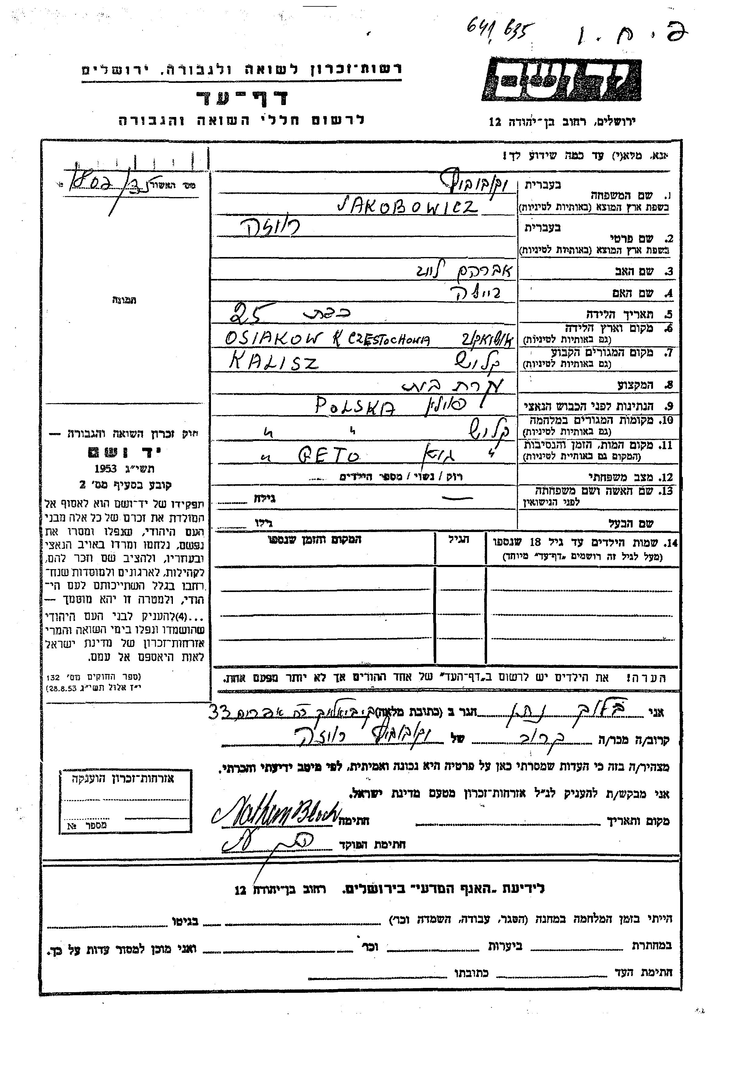 רויזה Jakobowicz נולדה בOsiakow שבפולין לאברהם לייב וביילה. היא היתה עקרת בית ורווקה. לפני מלחמת העולם השניה התגוררה בKalisz שבפולין. בזמן המלחמה היא היתה בKalisz שבפולין. רויזה נרצחה בשואה. מקום המוות: Kalisz שבפולין.