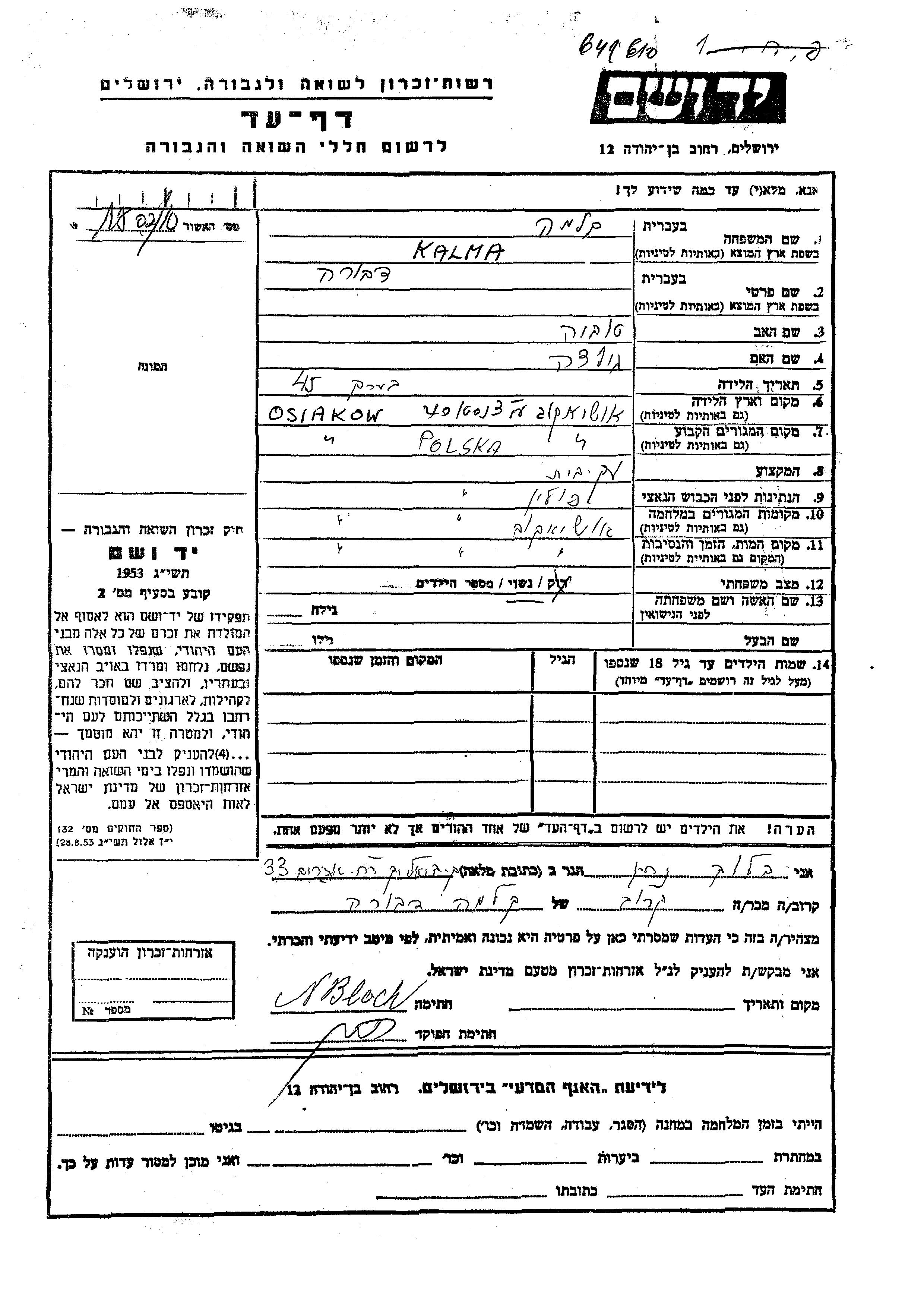 יד ושם - המפעל להנצחת השמות בדפי עד