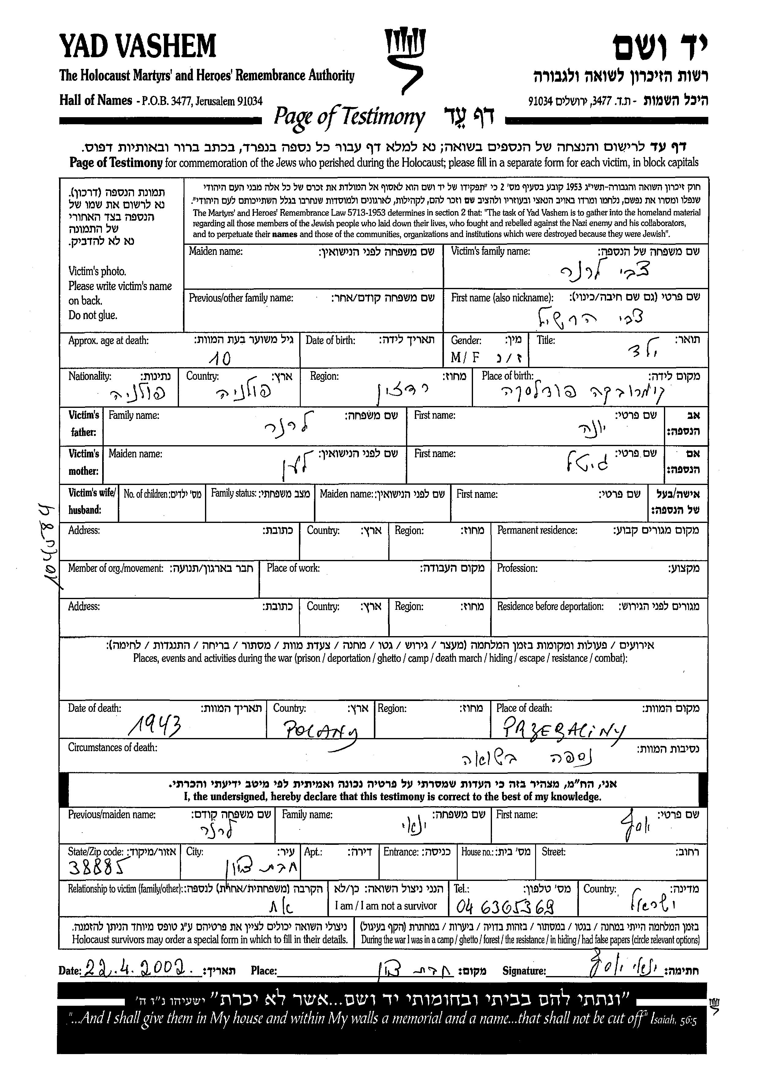 עיר/כפר, גטו/מחנה או אתר רצח או מחוז/אזור או מדינה. שם מקום ניתן לחפש רק בא-ב לטיני.