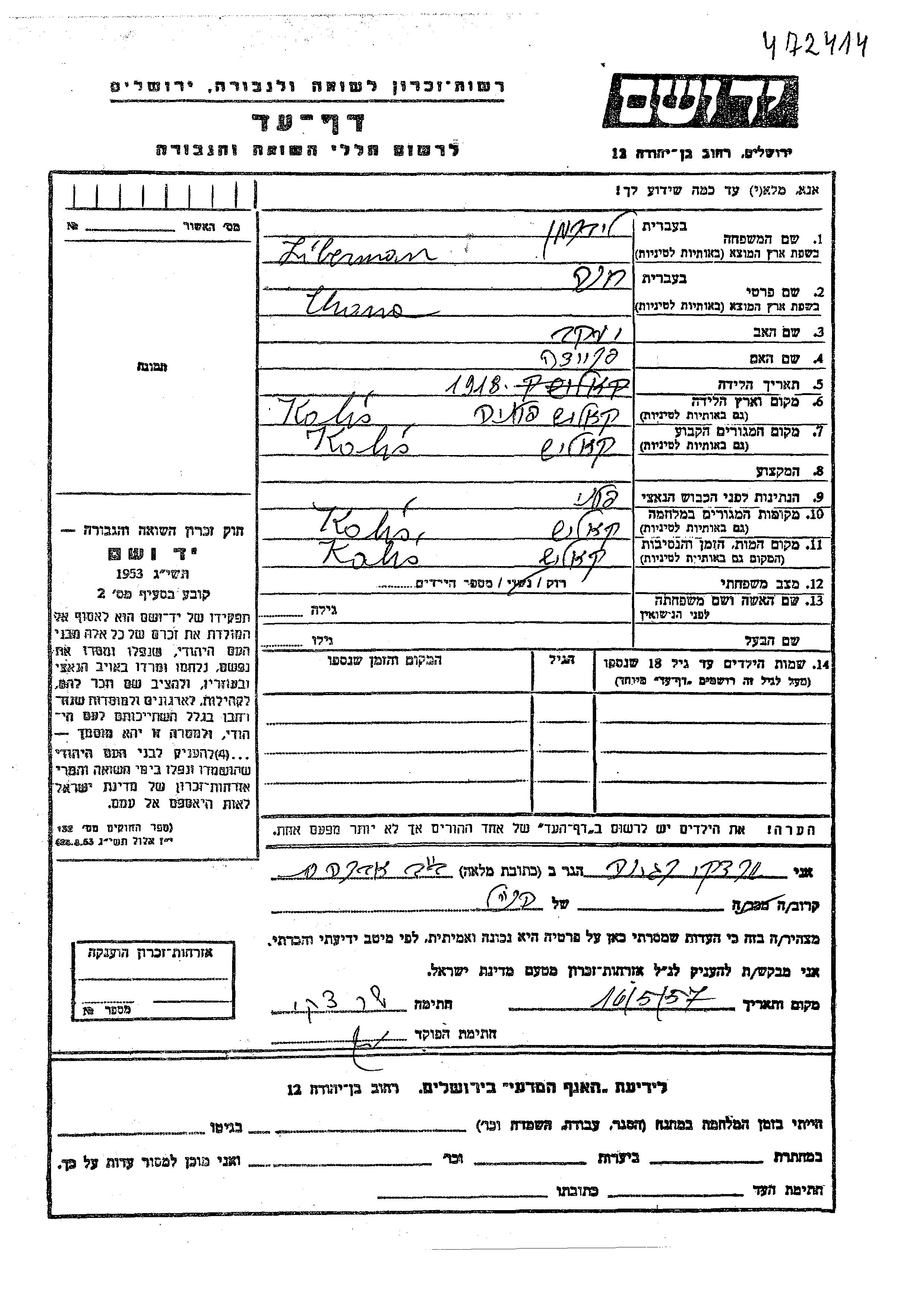 ליברמן חנה 1918 Kolish, פולין דף-עד