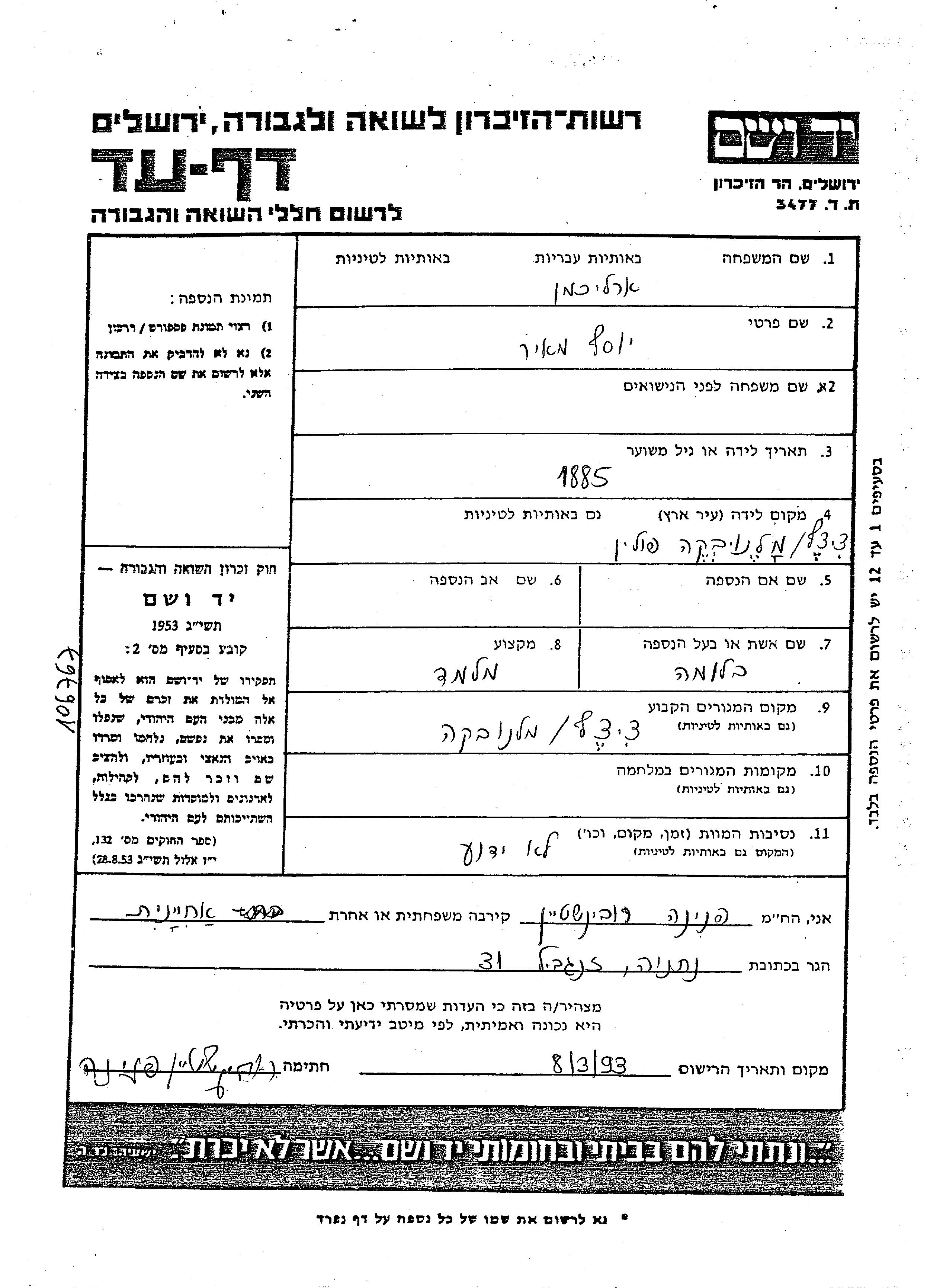 יד ושם - המפעל להנצחת השמות בדפי עד