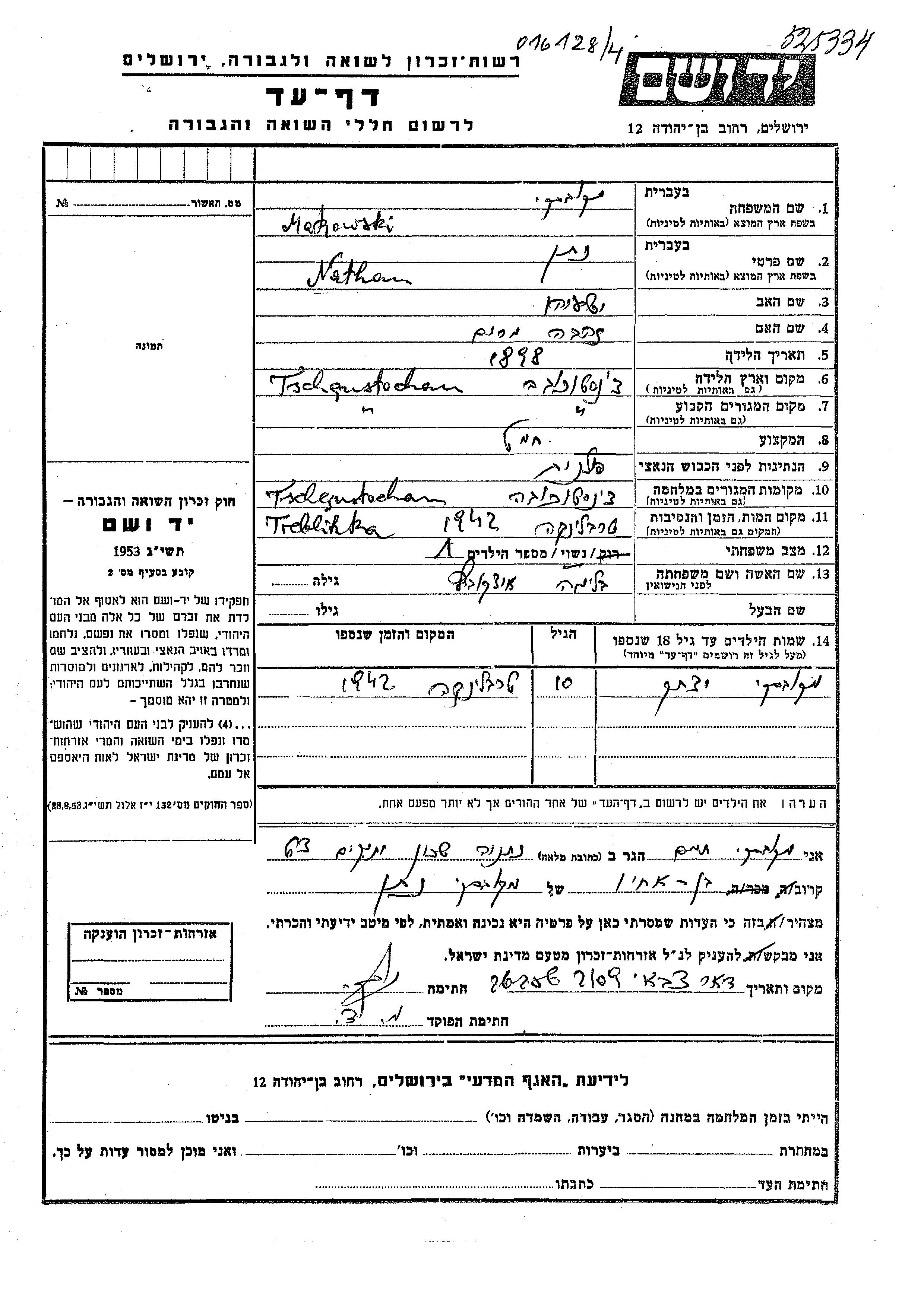 יד ושם - המפעל להנצחת השמות בדפי עד