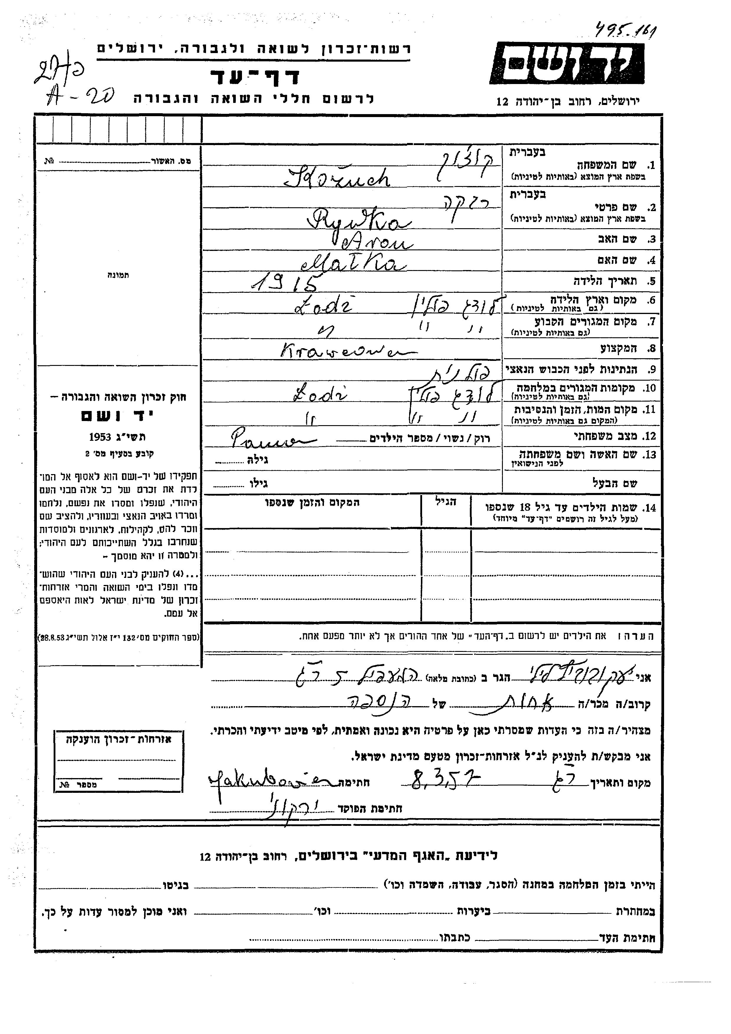 יד ושם - המפעל להנצחת השמות בדפי עד