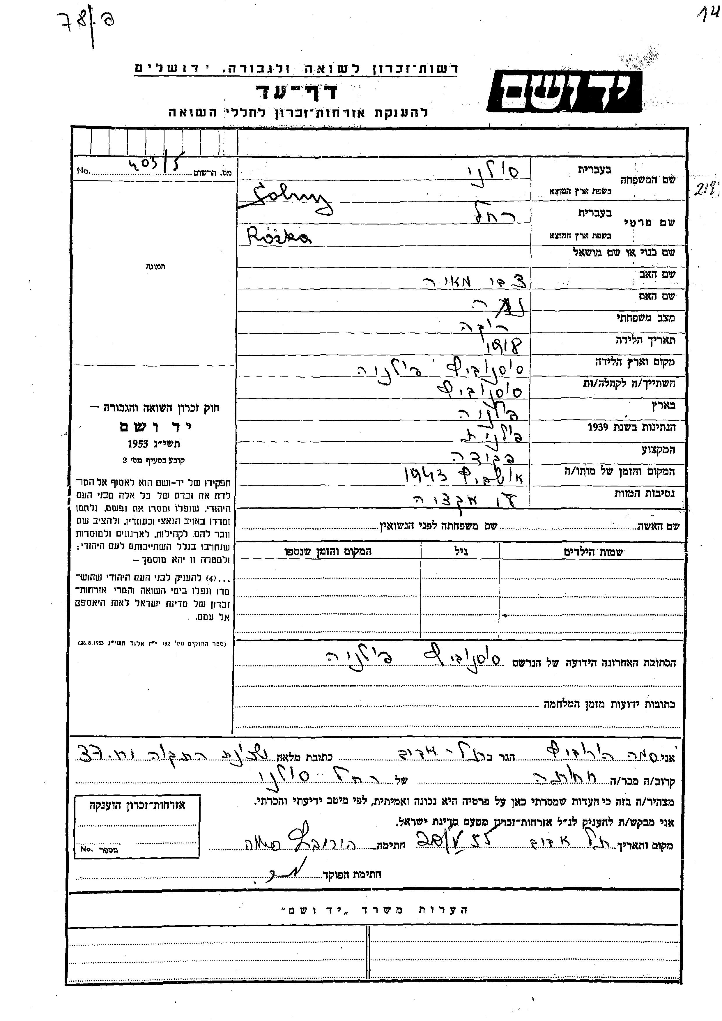 חיפוש שם מוסר דף העד. חיפוש לפי שם משפחה; כולל גם תוצאות חיפוש לפי שם הנעורים של אישה לפני הנישואין