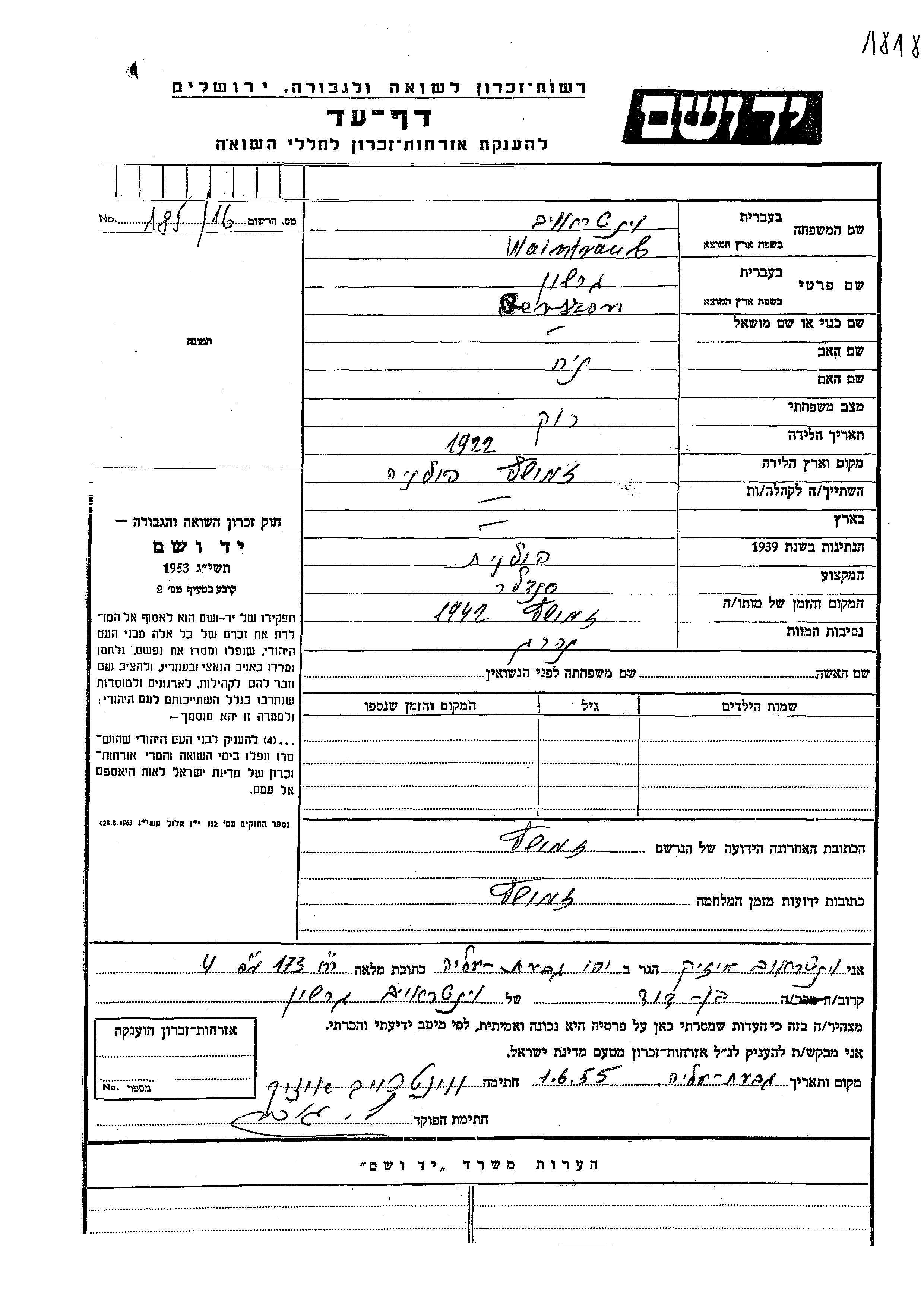 יד ושם - המפעל להנצחת השמות בדפי עד