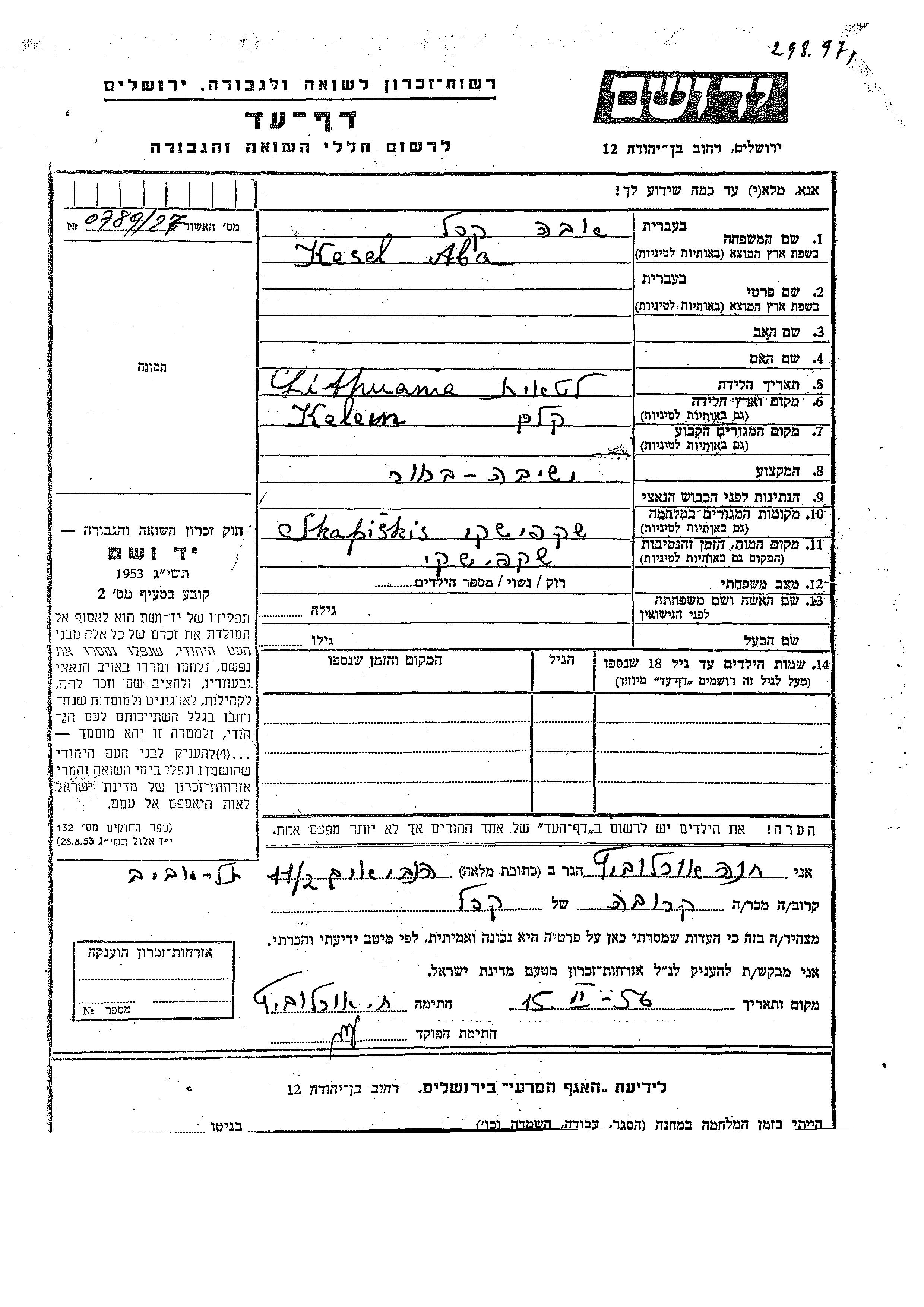 יד ושם - המפעל להנצחת השמות בדפי עד