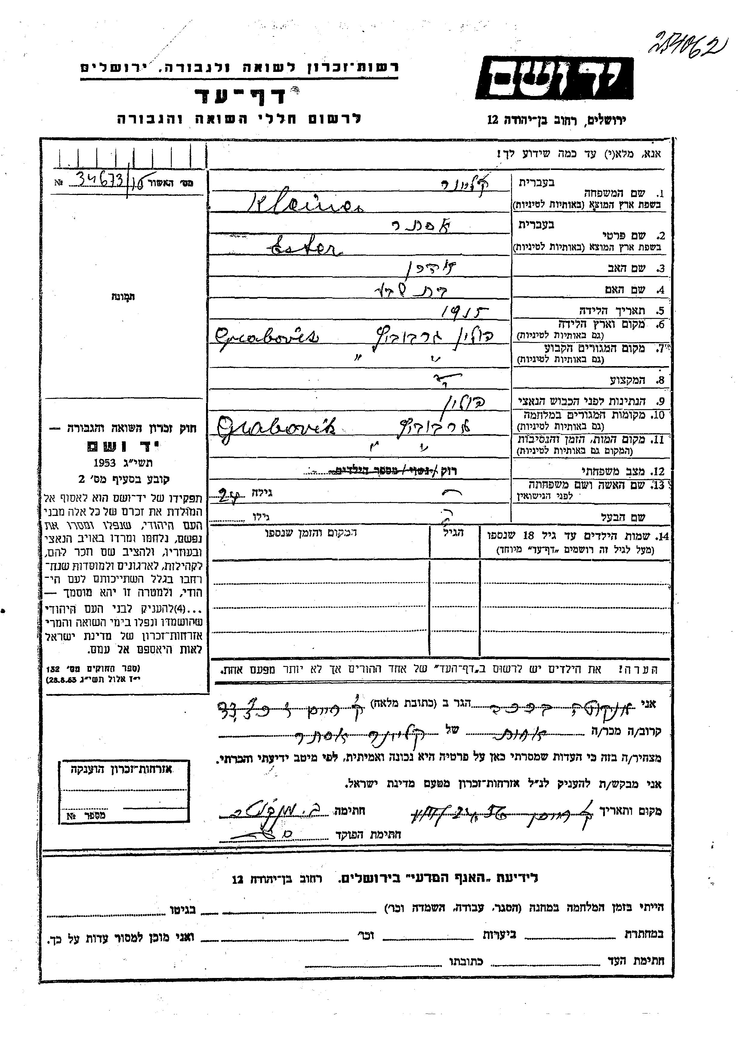 יד ושם - המפעל להנצחת השמות בדפי עד