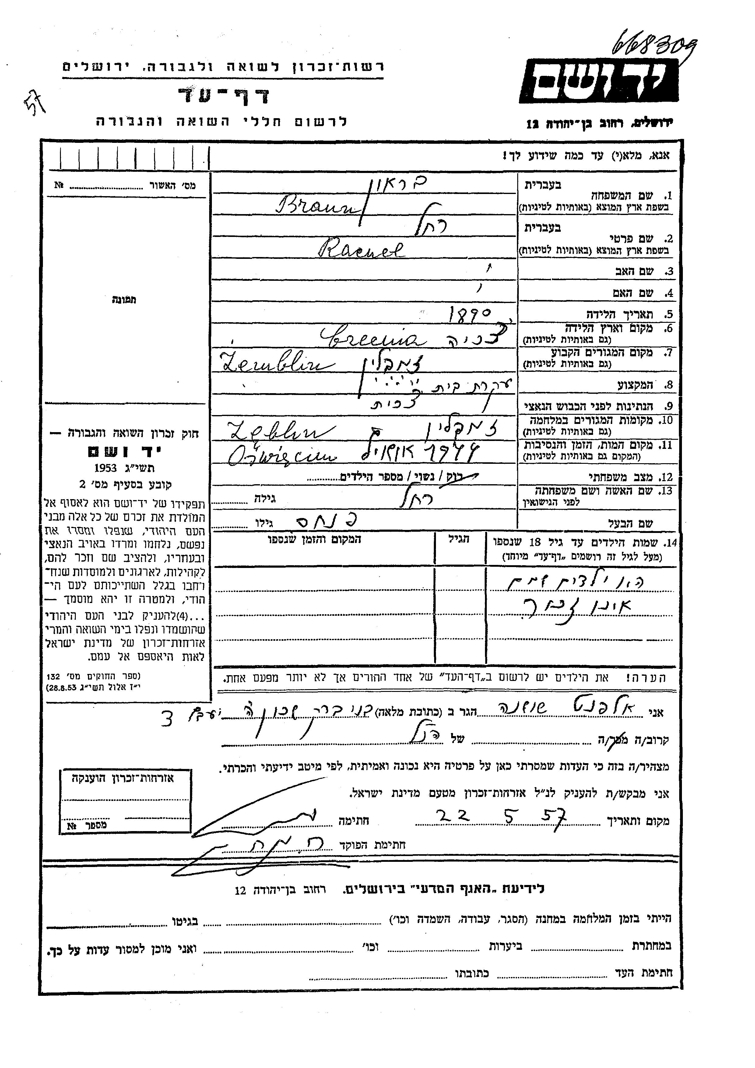 רחל נרצחה בשואה. מקום המוות: Auschwitz שבפולין בשנת 1944.