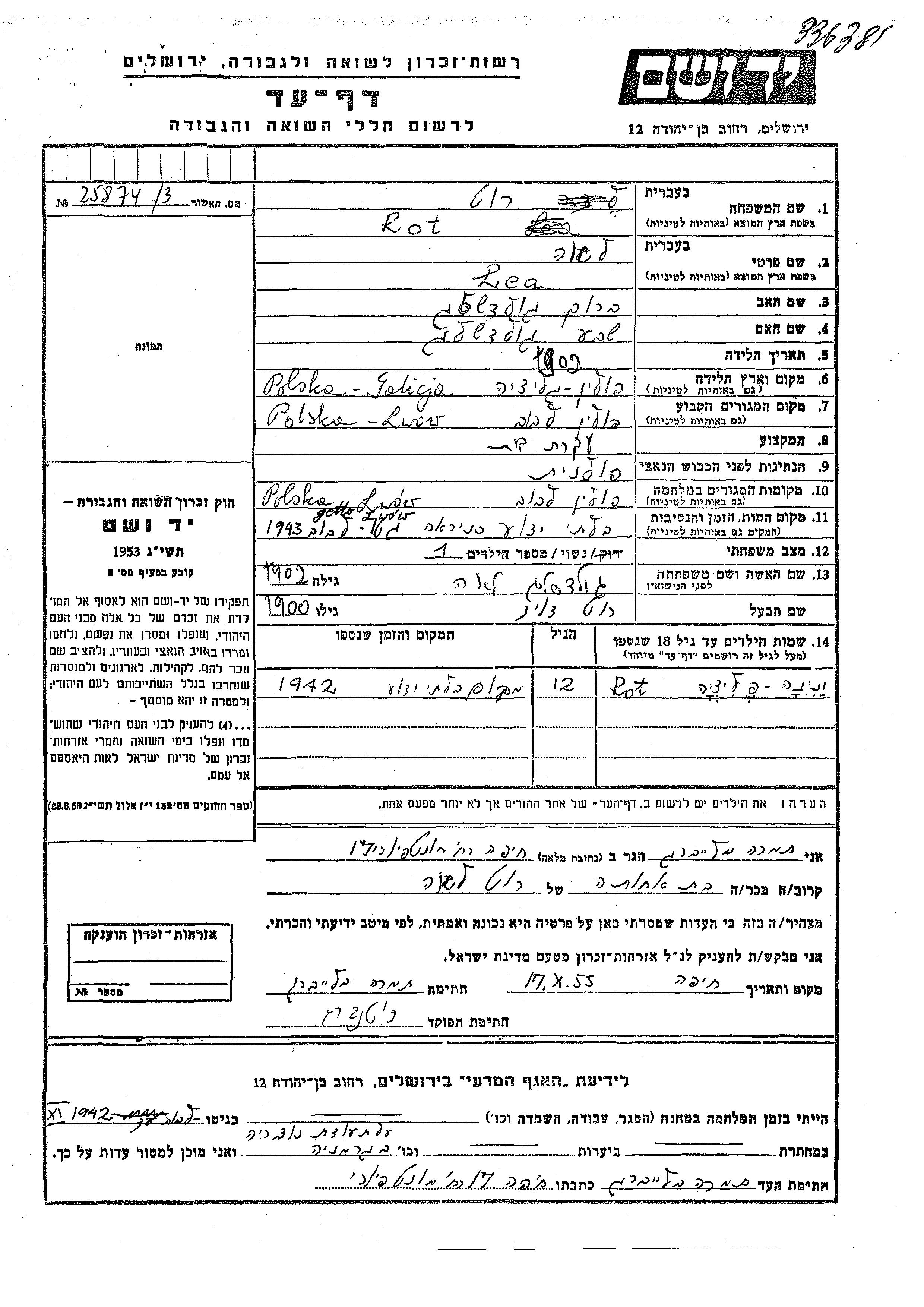 יד ושם - המפעל להנצחת השמות בדפי עד