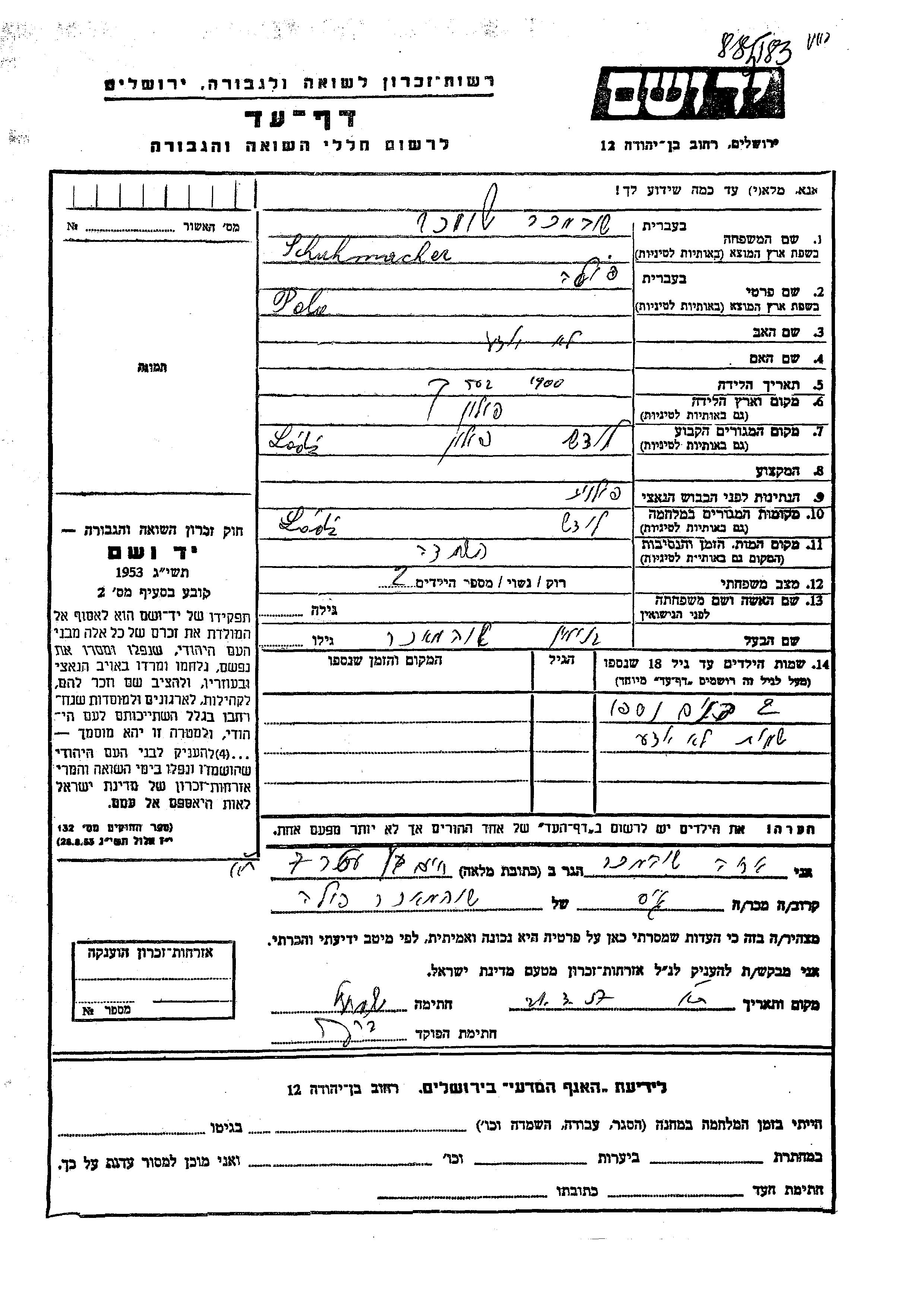 חיפוש שם מוסר דף העד. חיפוש לפי כל שם פרטי, כולל כינוי או שם חיבה