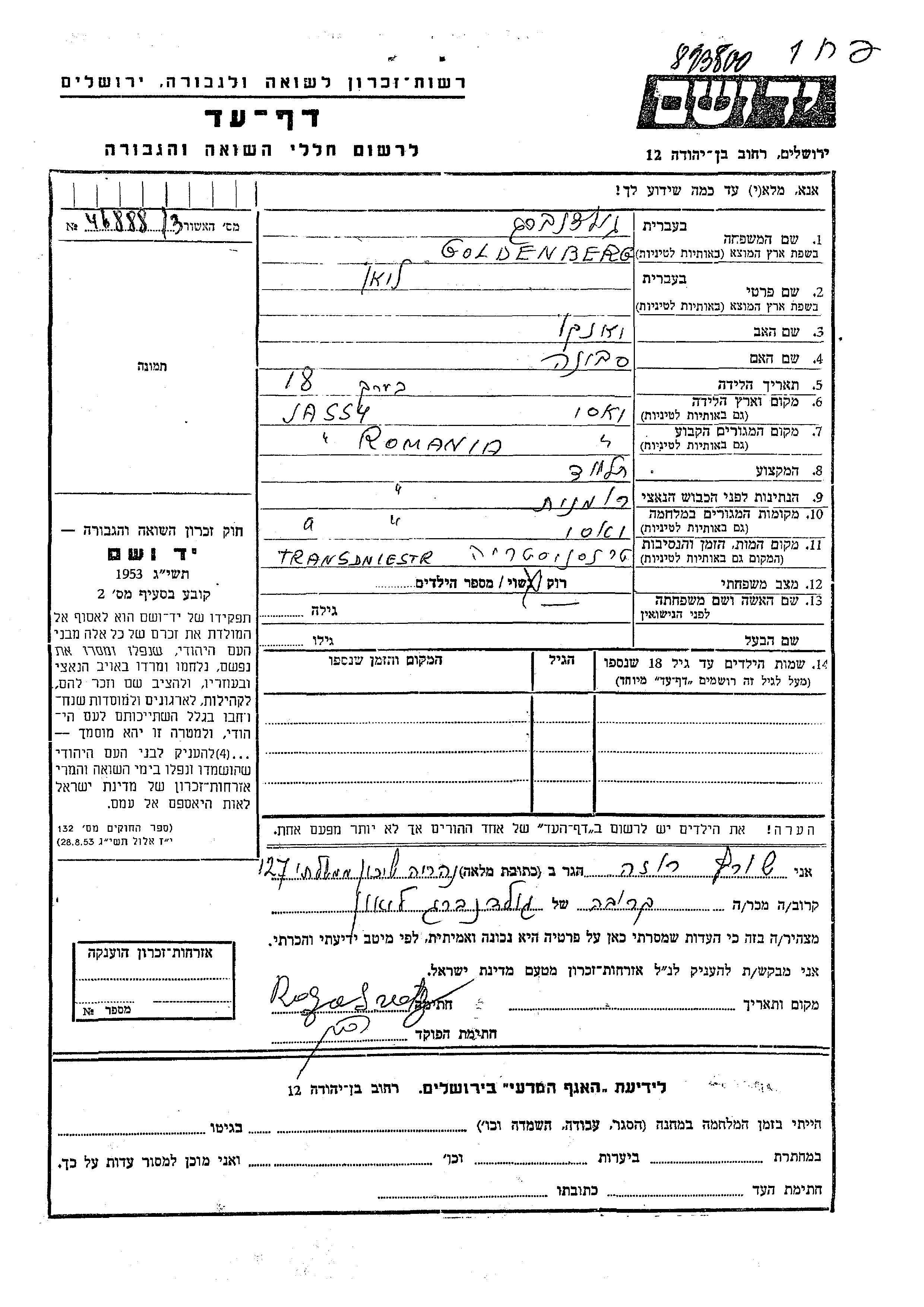 יד ושם - המפעל להנצחת השמות בדפי עד
