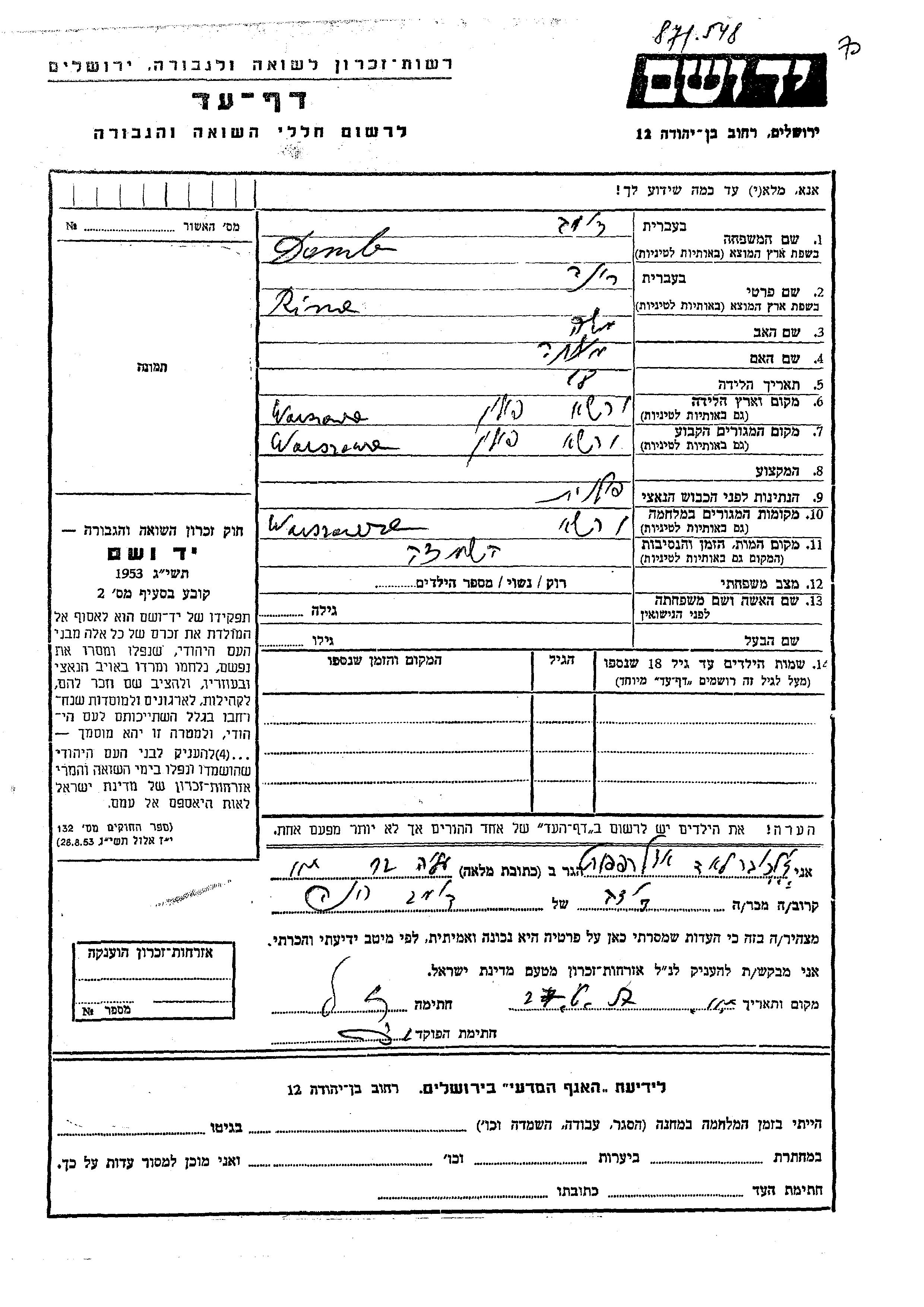 יד ושם - המפעל להנצחת השמות בדפי עד