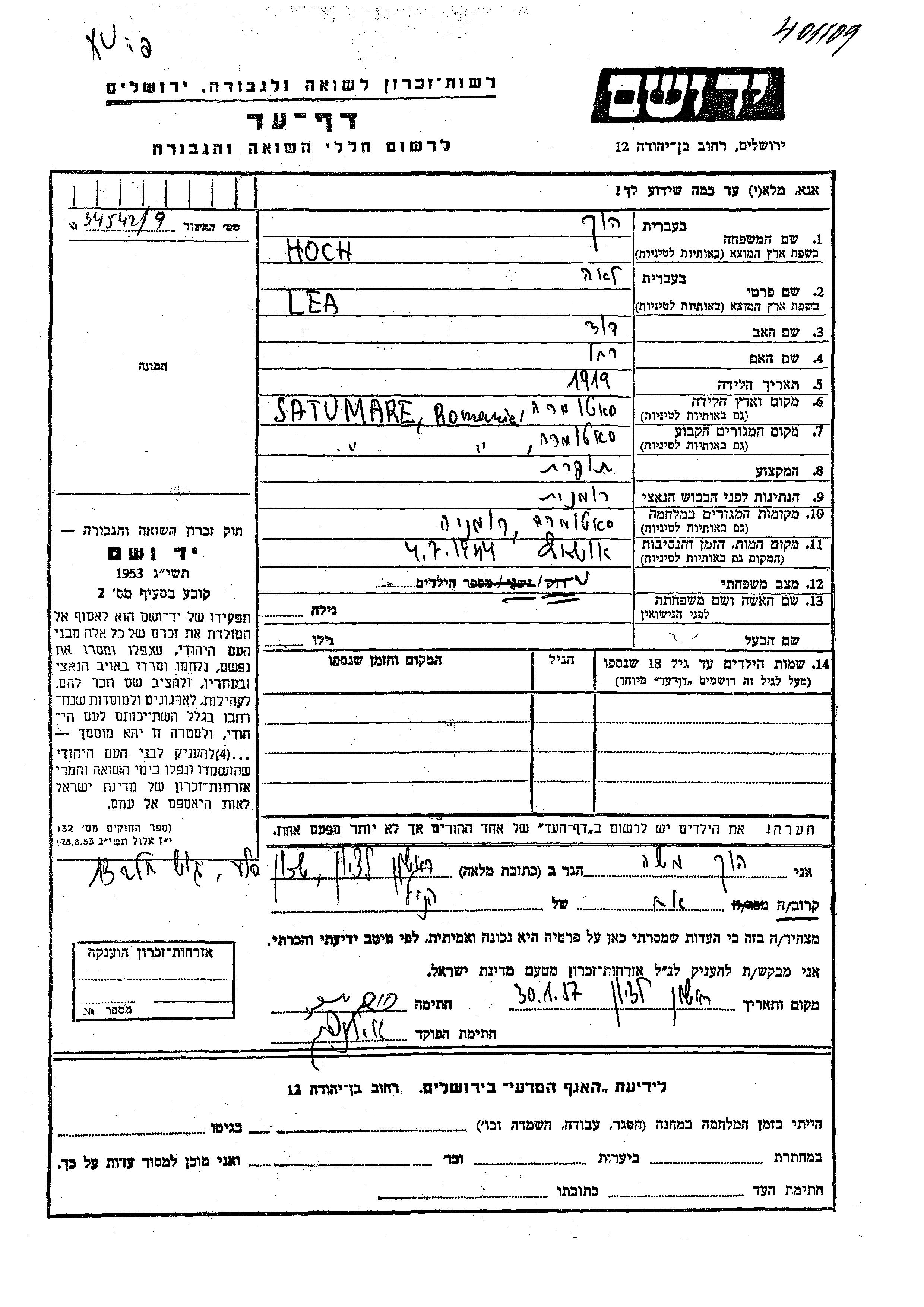 Hoch לאה 1919 Satumare, רומניה דף-עד
