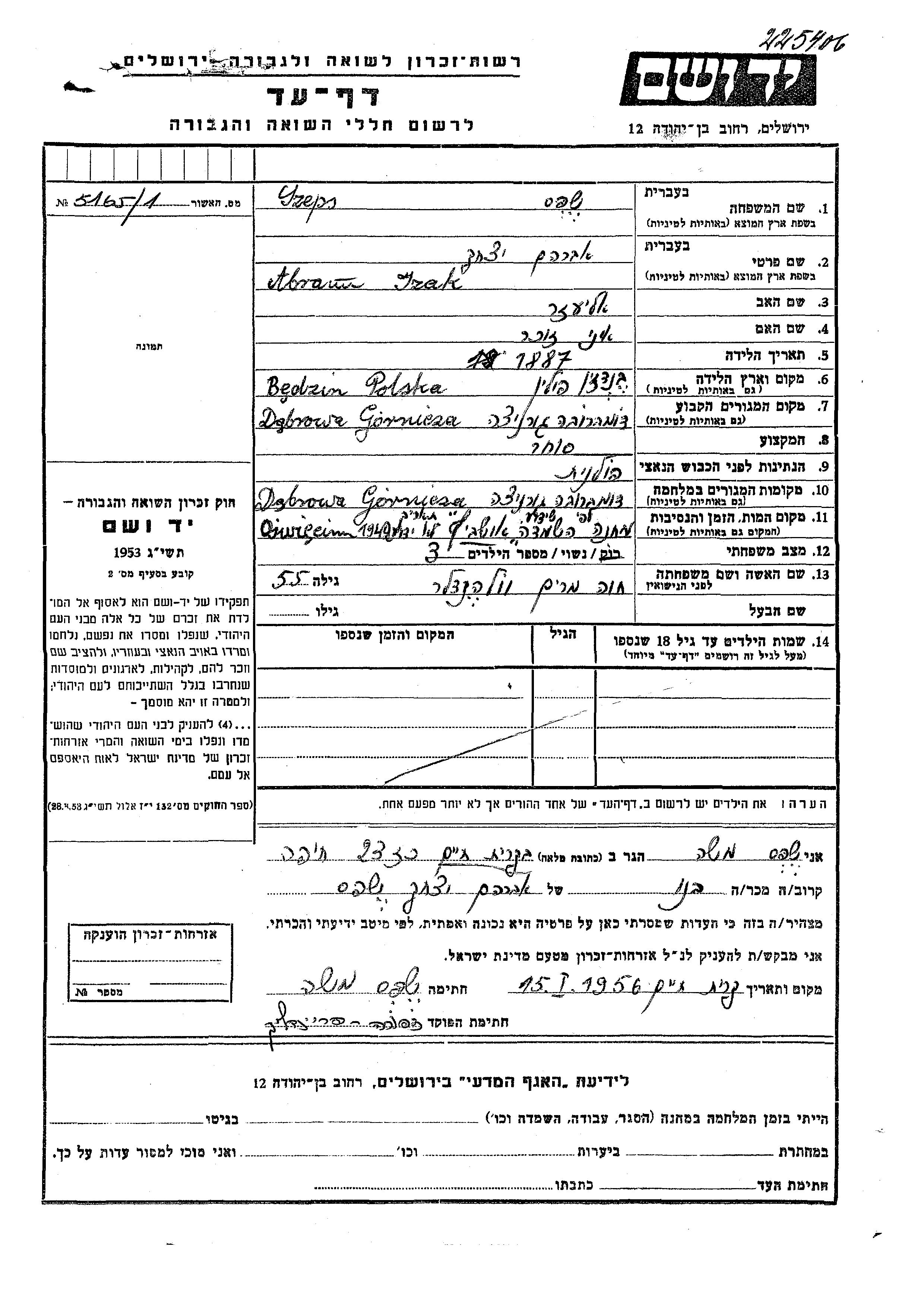 Szeps אברם איזק 1887 Dabrowa Gornicza, פולין דף-עד