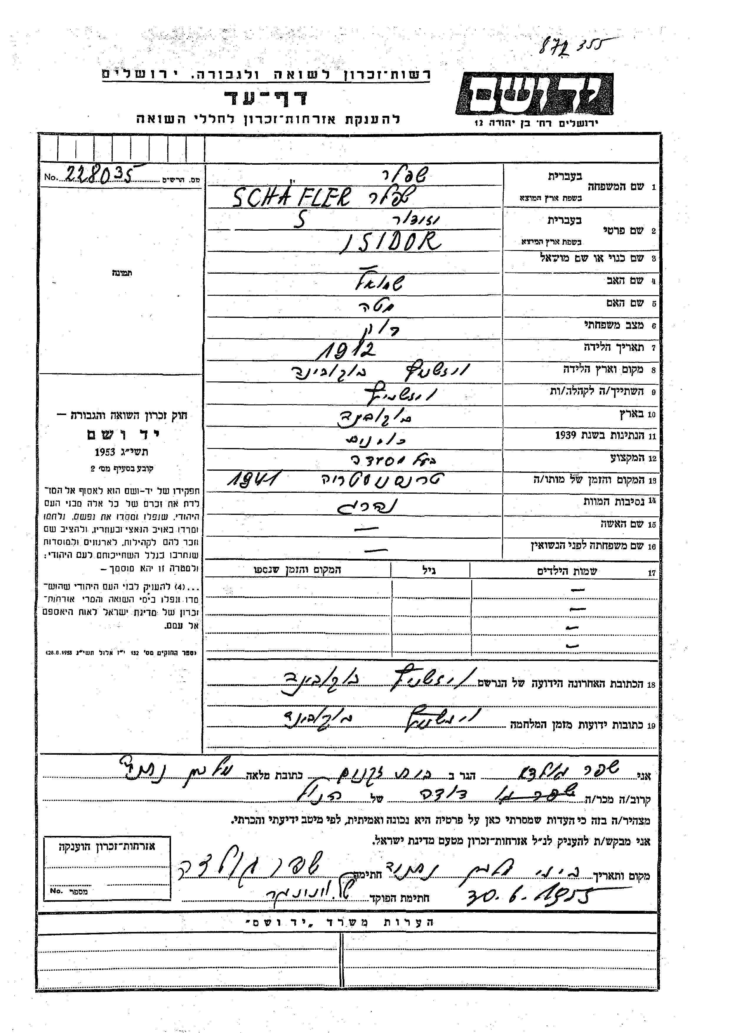 יד ושם - המפעל להנצחת השמות בדפי עד