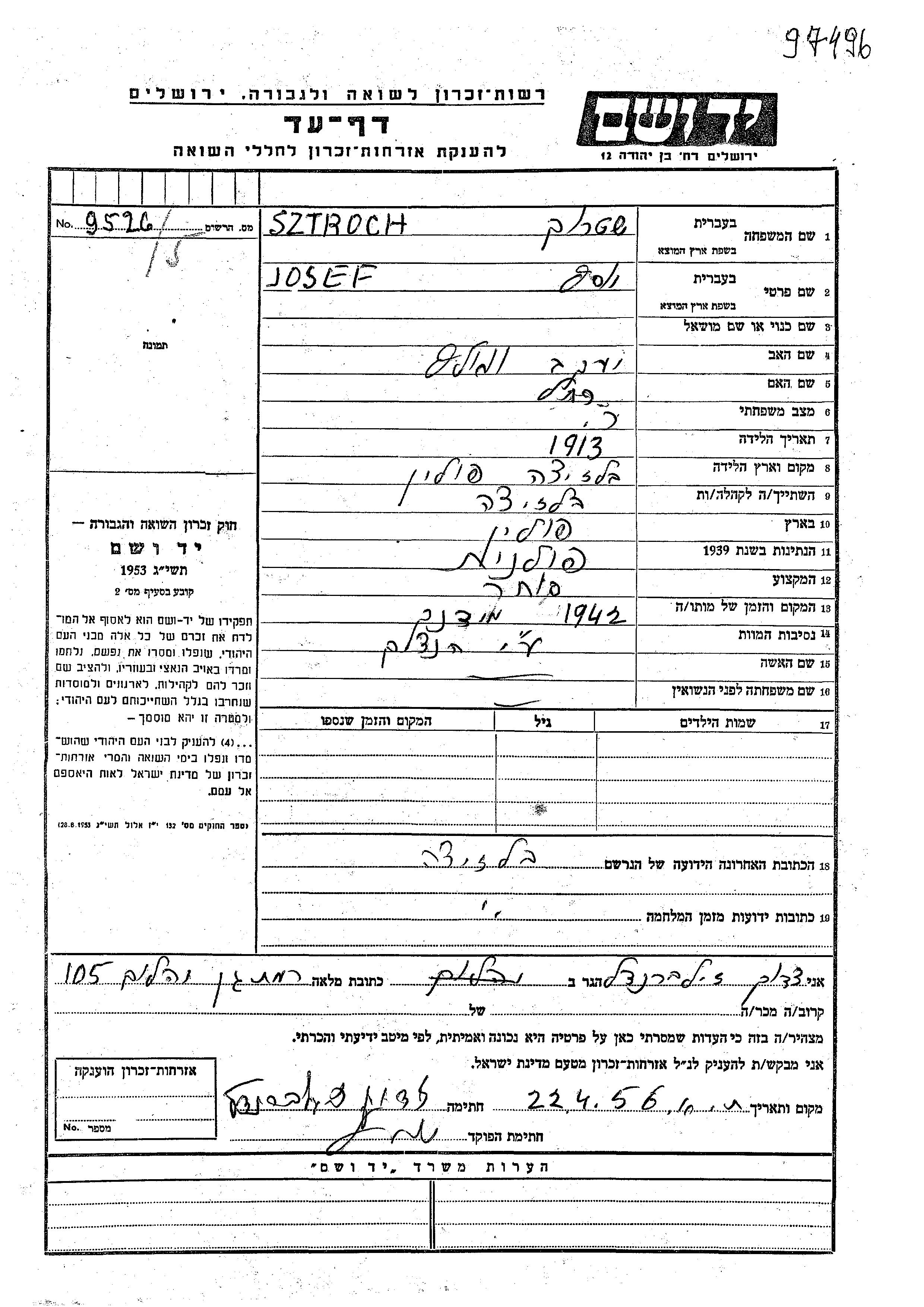 Sztroch Josef 1913 Belzyce, פולין דף-עד