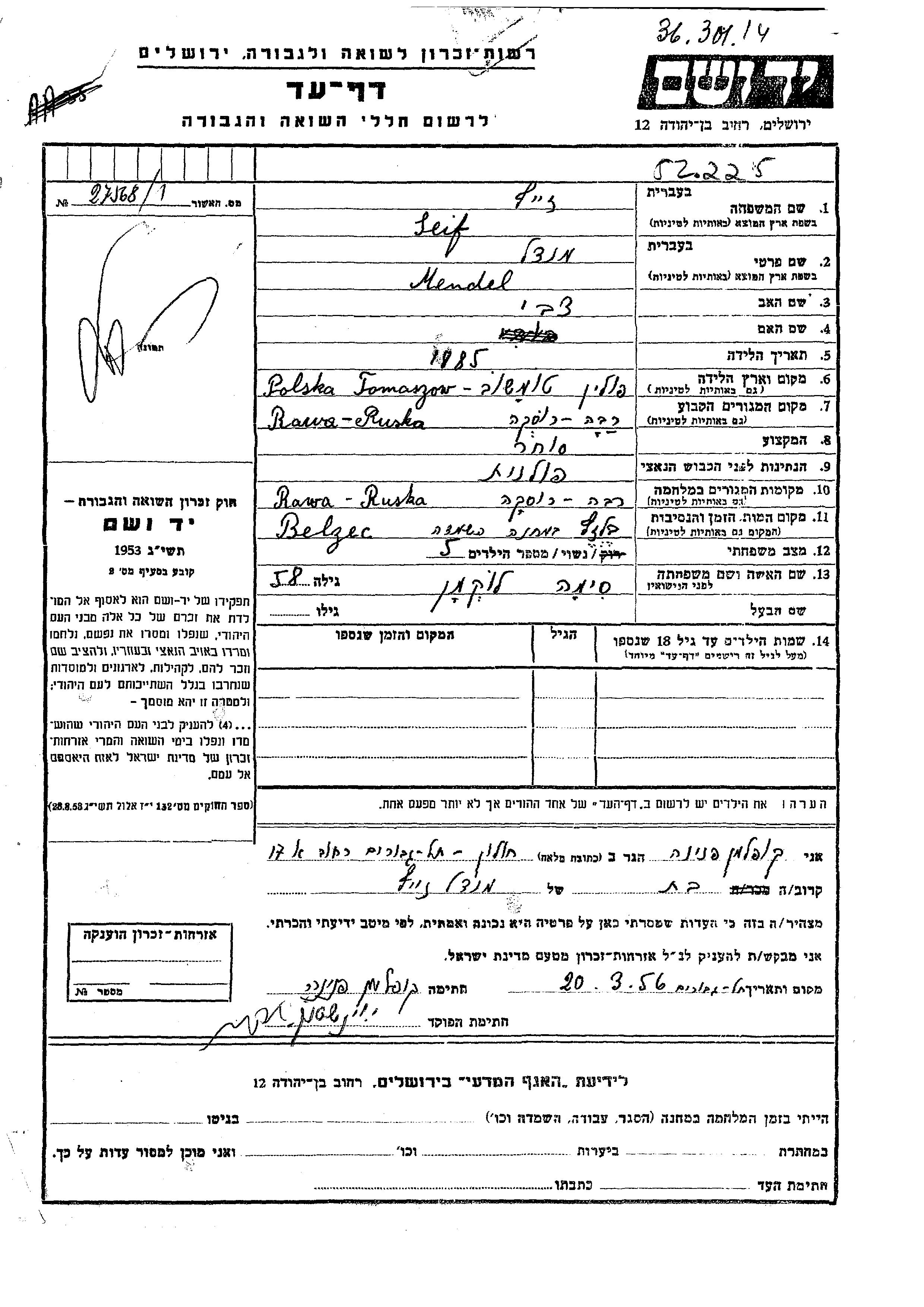 זייף מנדל 1885 Rawa Ruska, פולין דף-עד