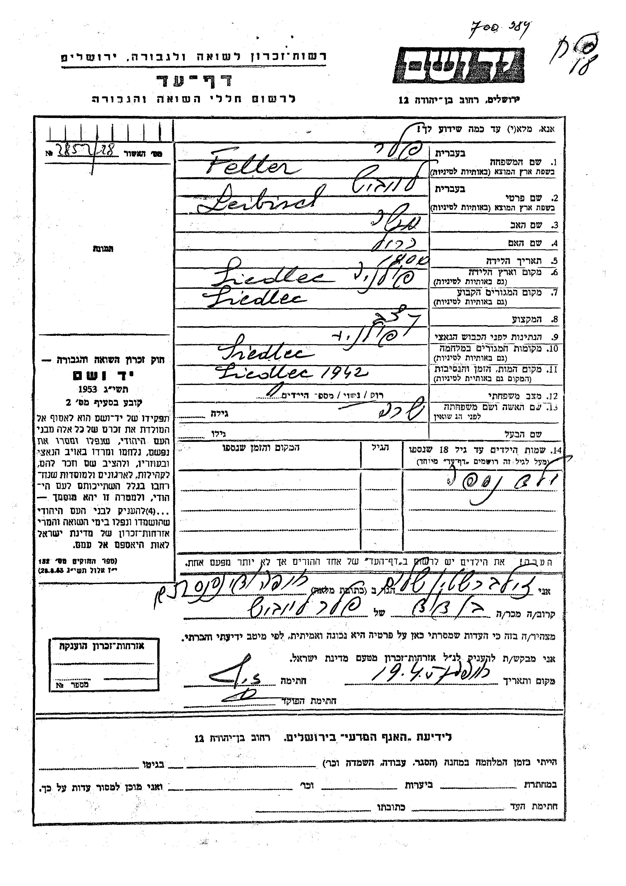 יד ושם - המפעל להנצחת השמות בדפי עד