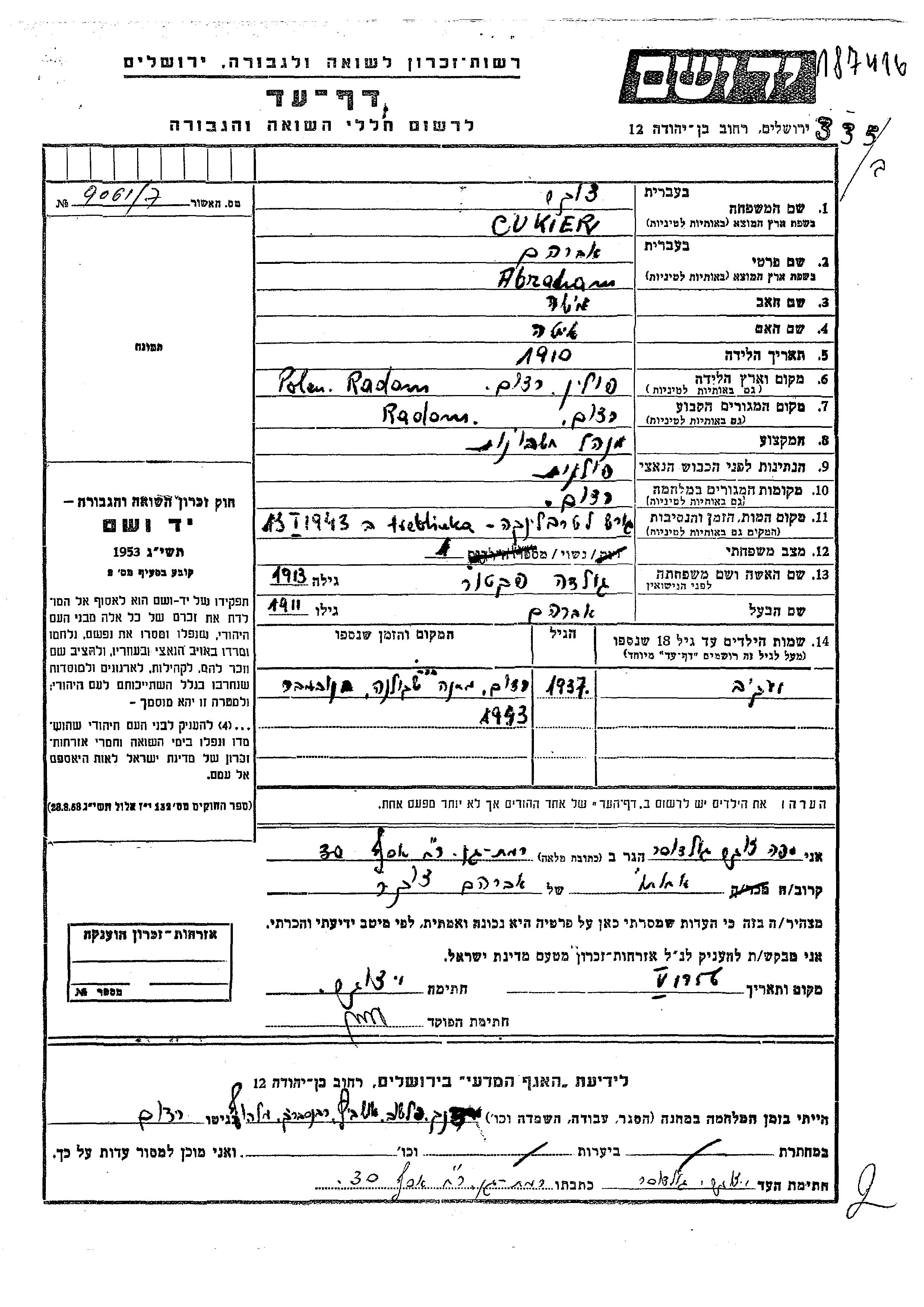 חיפוש שם מוסר דף העד. חיפוש לפי כל שם פרטי, כולל כינוי או שם חיבה
