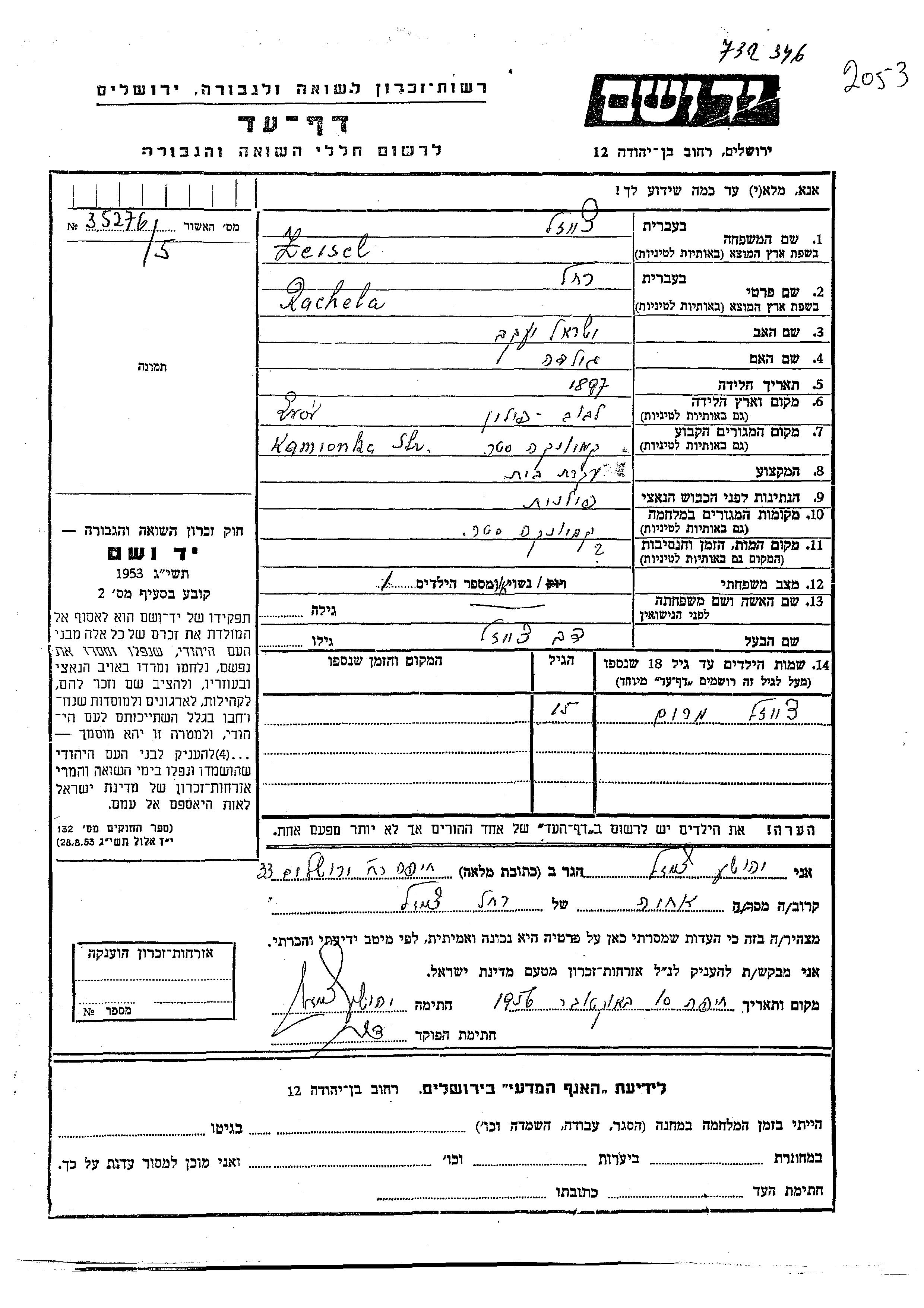 זייסל Rachela 1897 Kamionka, פולין דף-עד