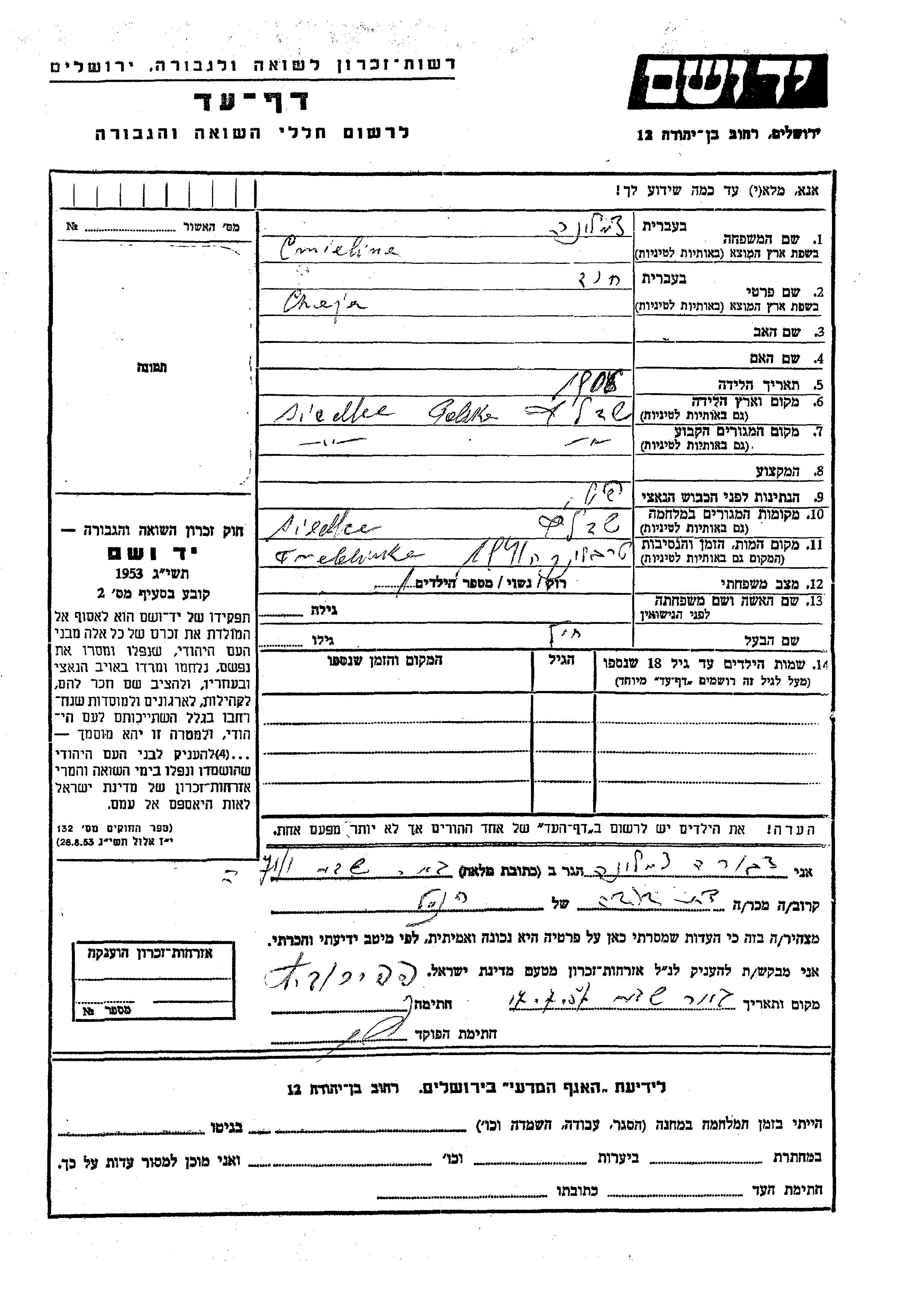 Chaja חוה Cmielina נולדה בSiedlce שבפולין בשנת 1905. היא היתה נשואה לחיל. לפני מלחמת העולם השניה התגוררה בSiedlce שבפולין. בזמן המלחמה היא היתה בSiedlce שבפולין. היא נרצחה בשואה. מקום המוות: Treblinka שבפולין בשנת 1941.