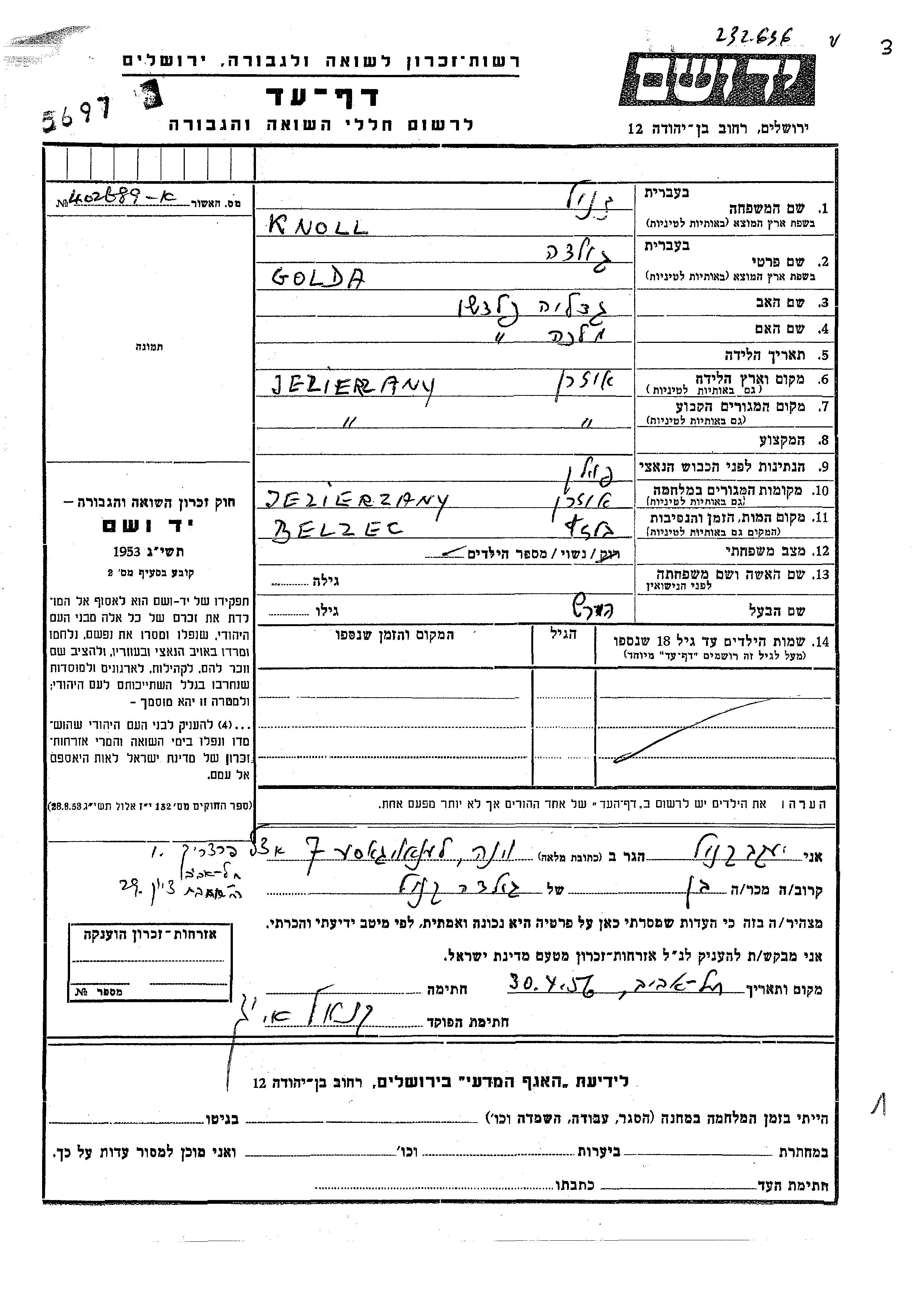 יד ושם - המפעל להנצחת השמות בדפי עד