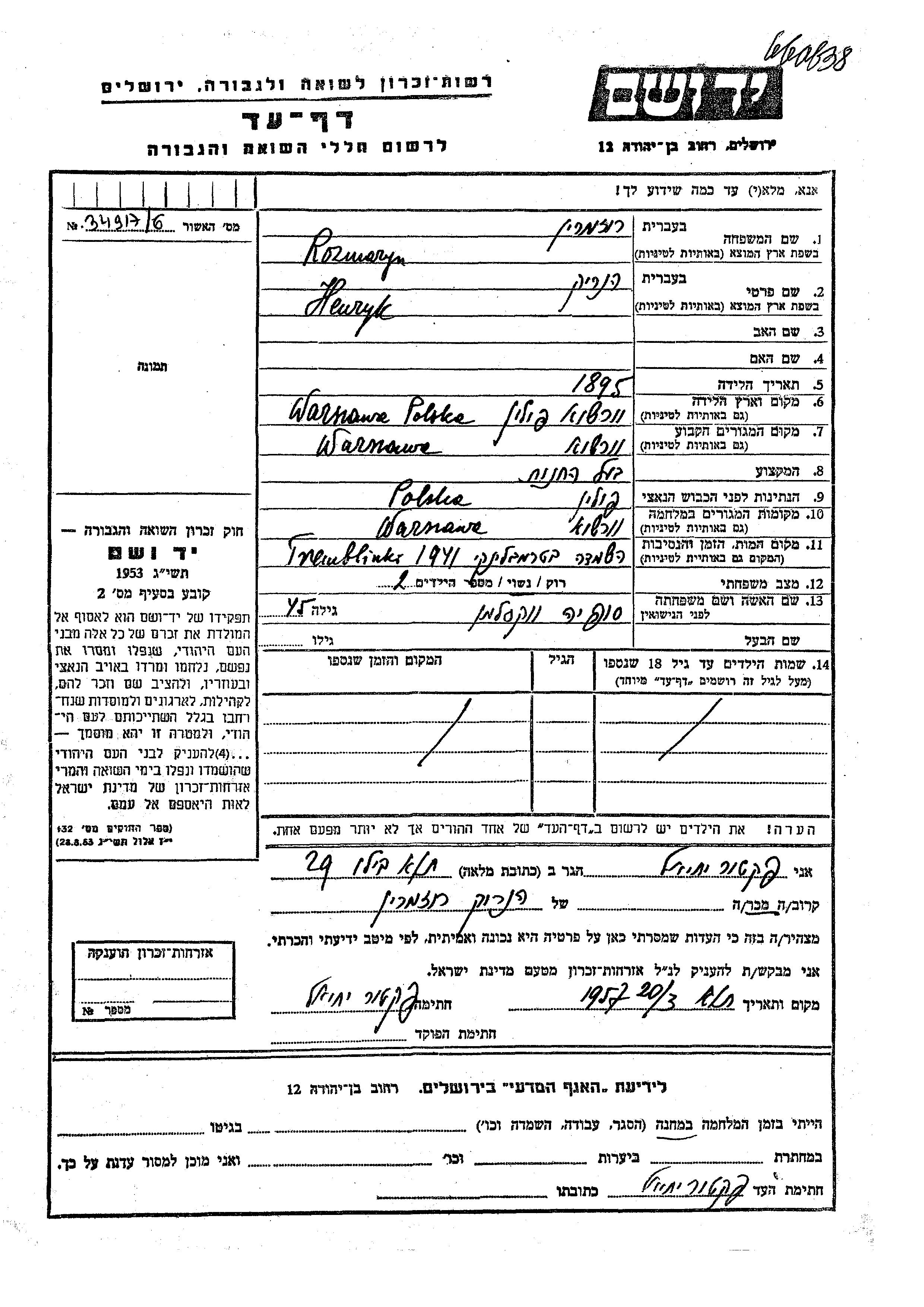 חיפוש שם מוסר דף העד. חיפוש לפי כל שם פרטי, כולל כינוי או שם חיבה