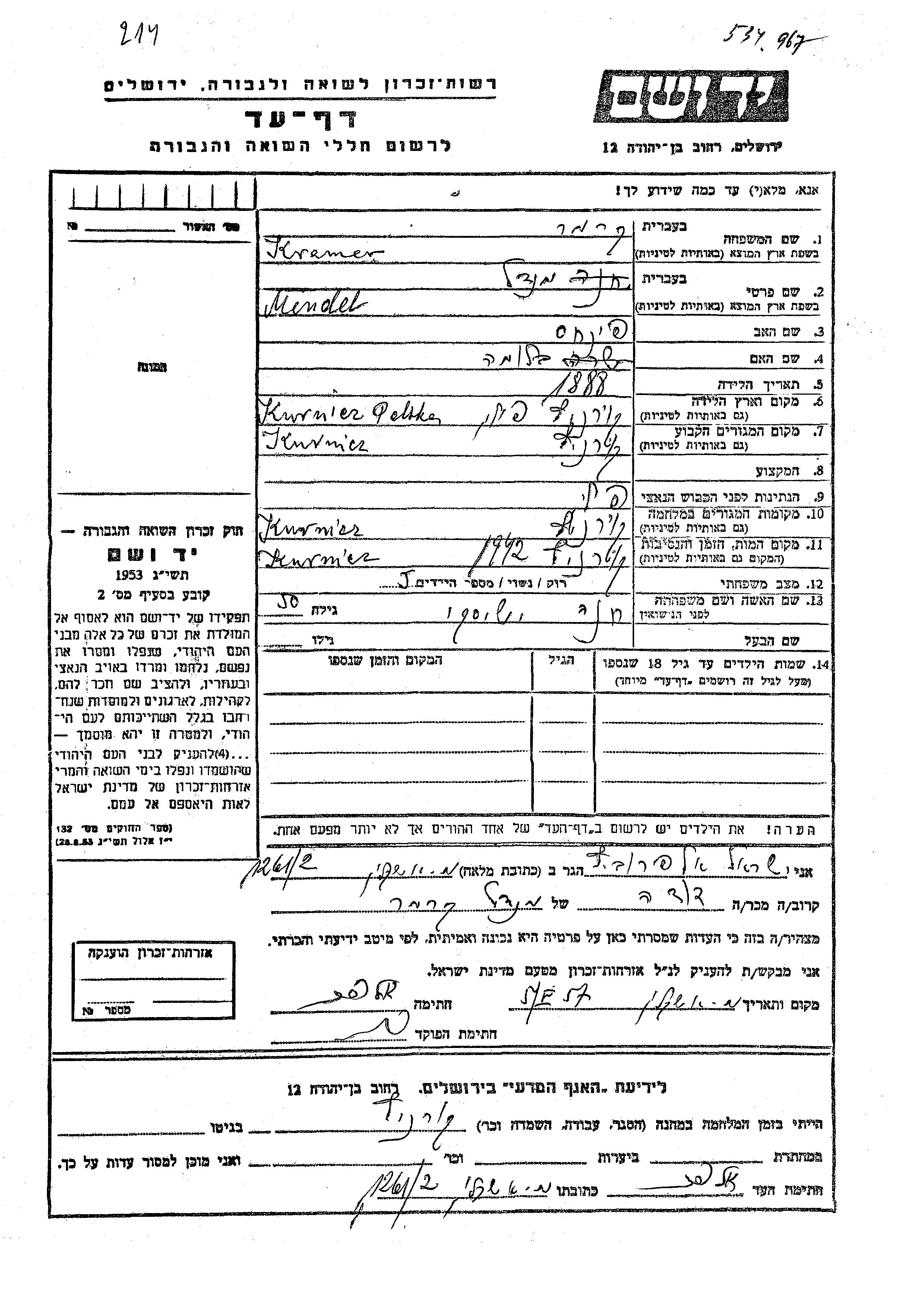 קרמר מנדל 1888 Korzeniec, פולין דף-עד