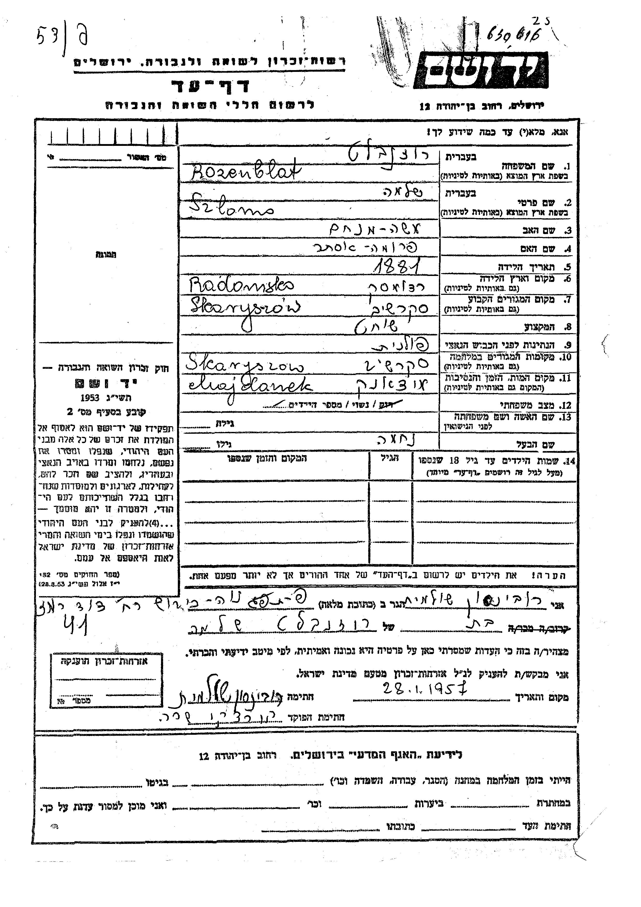 רוזנבלט Szlomo 1881 Skaryszew, פולין דף-עד