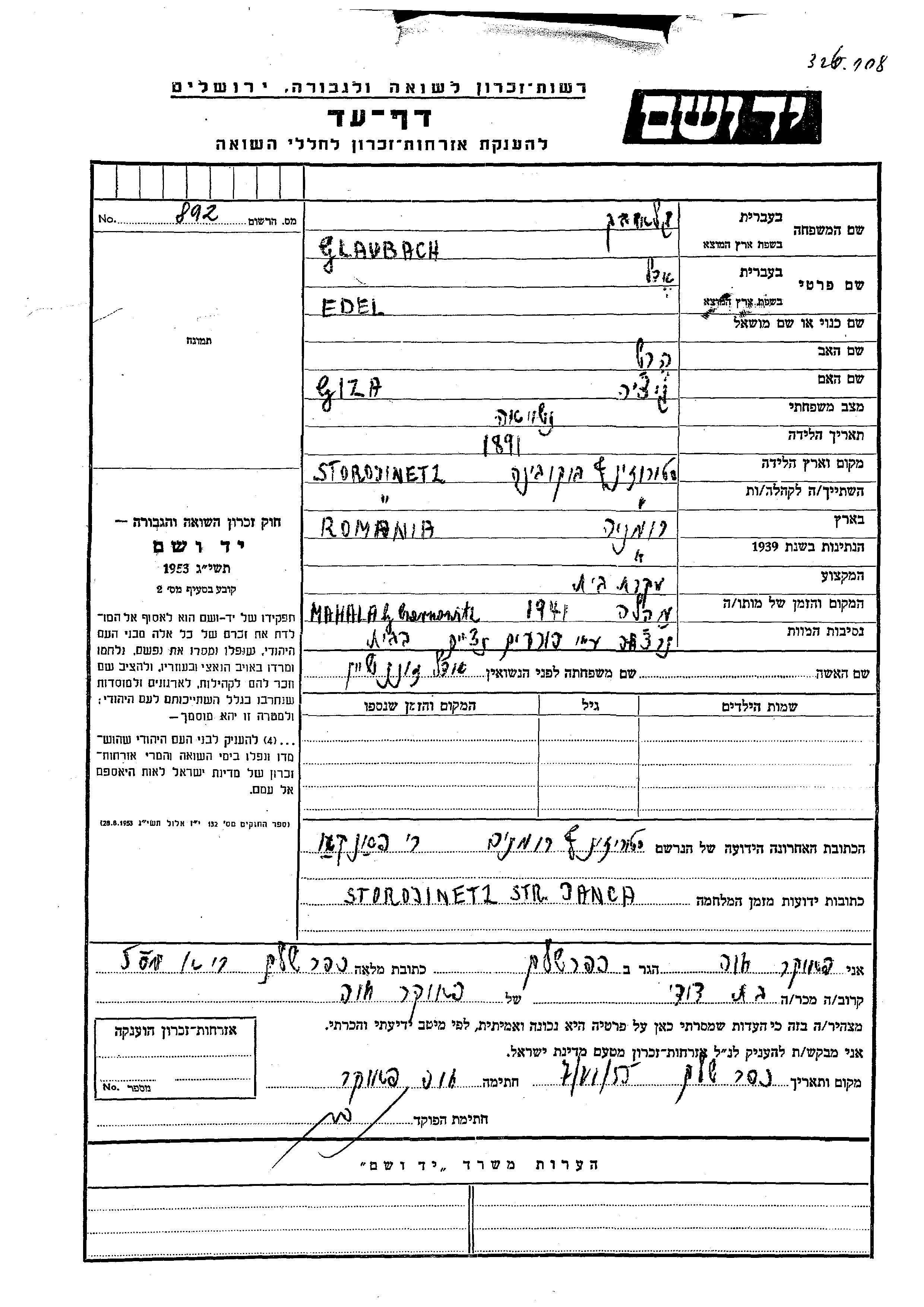 יד ושם - המפעל להנצחת השמות בדפי עד