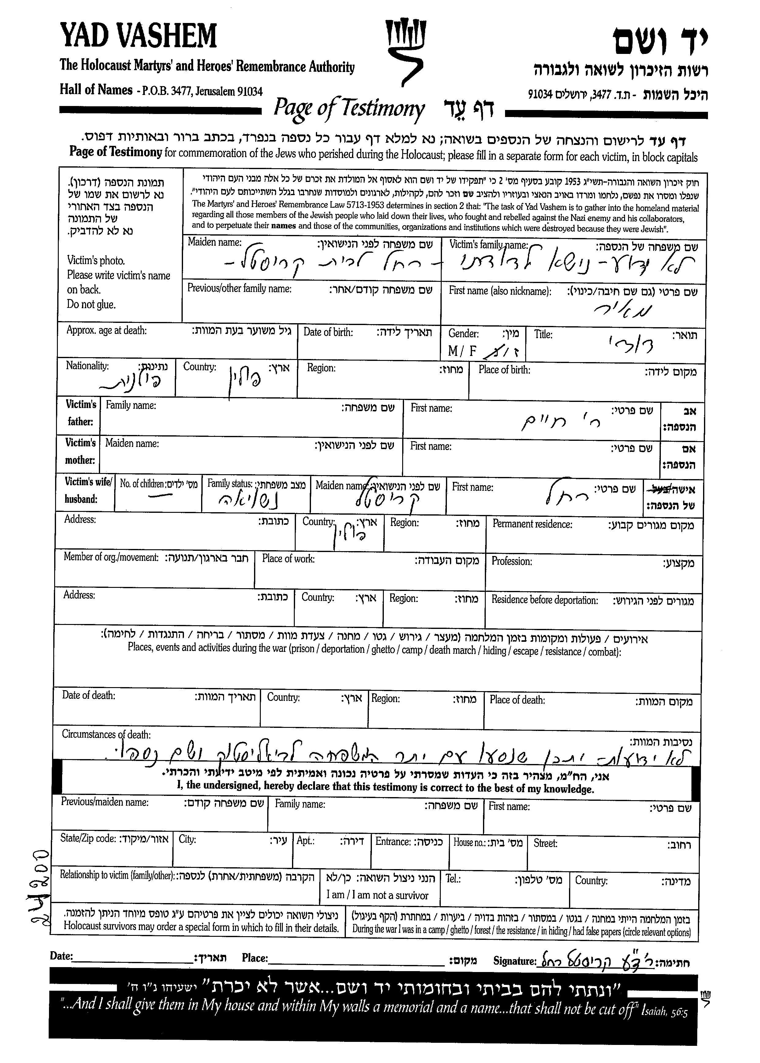 יד ושם - המפעל להנצחת השמות בדפי עד