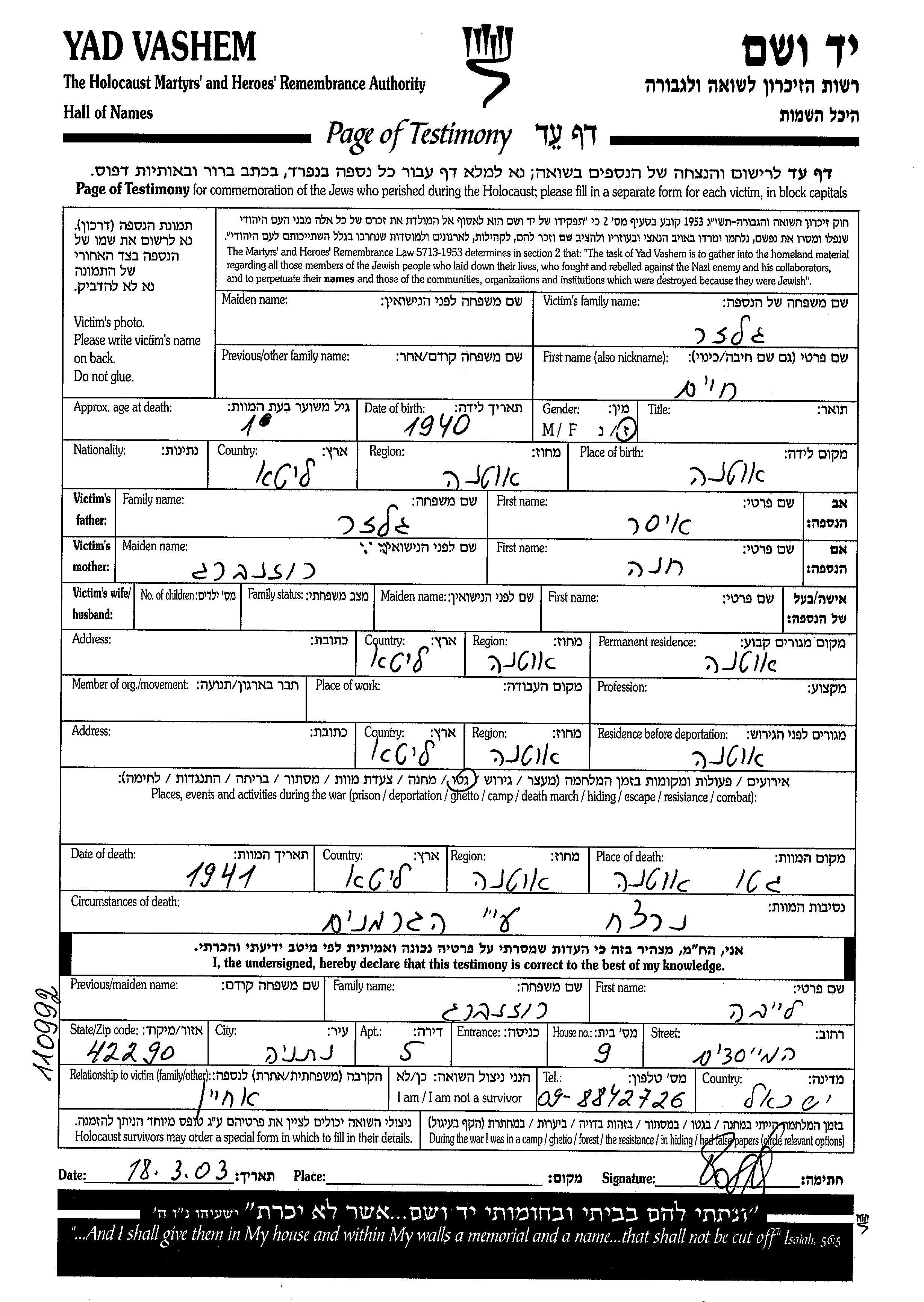 יד ושם - המפעל להנצחת השמות בדפי עד