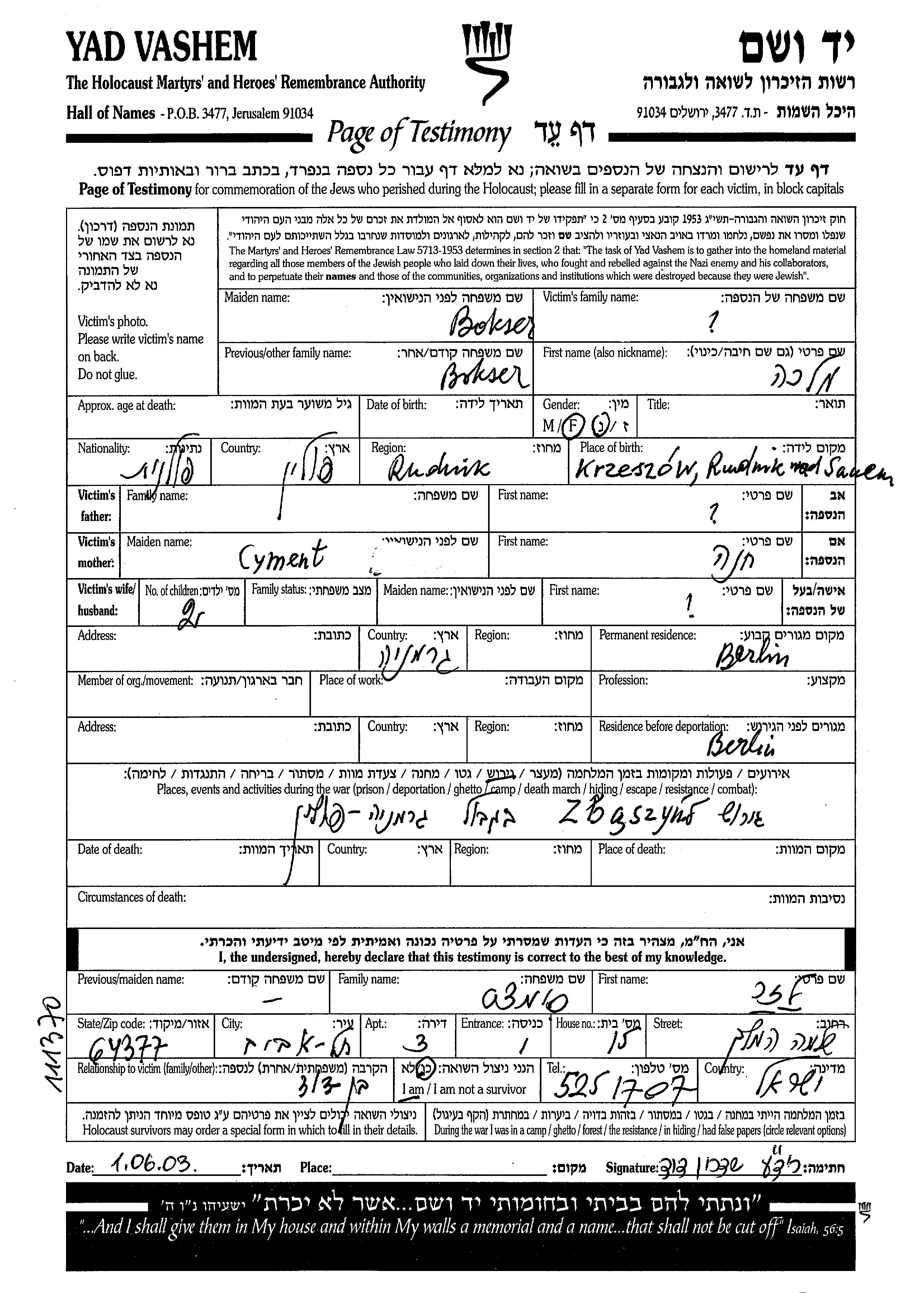 יד ושם - המפעל להנצחת השמות בדפי עד