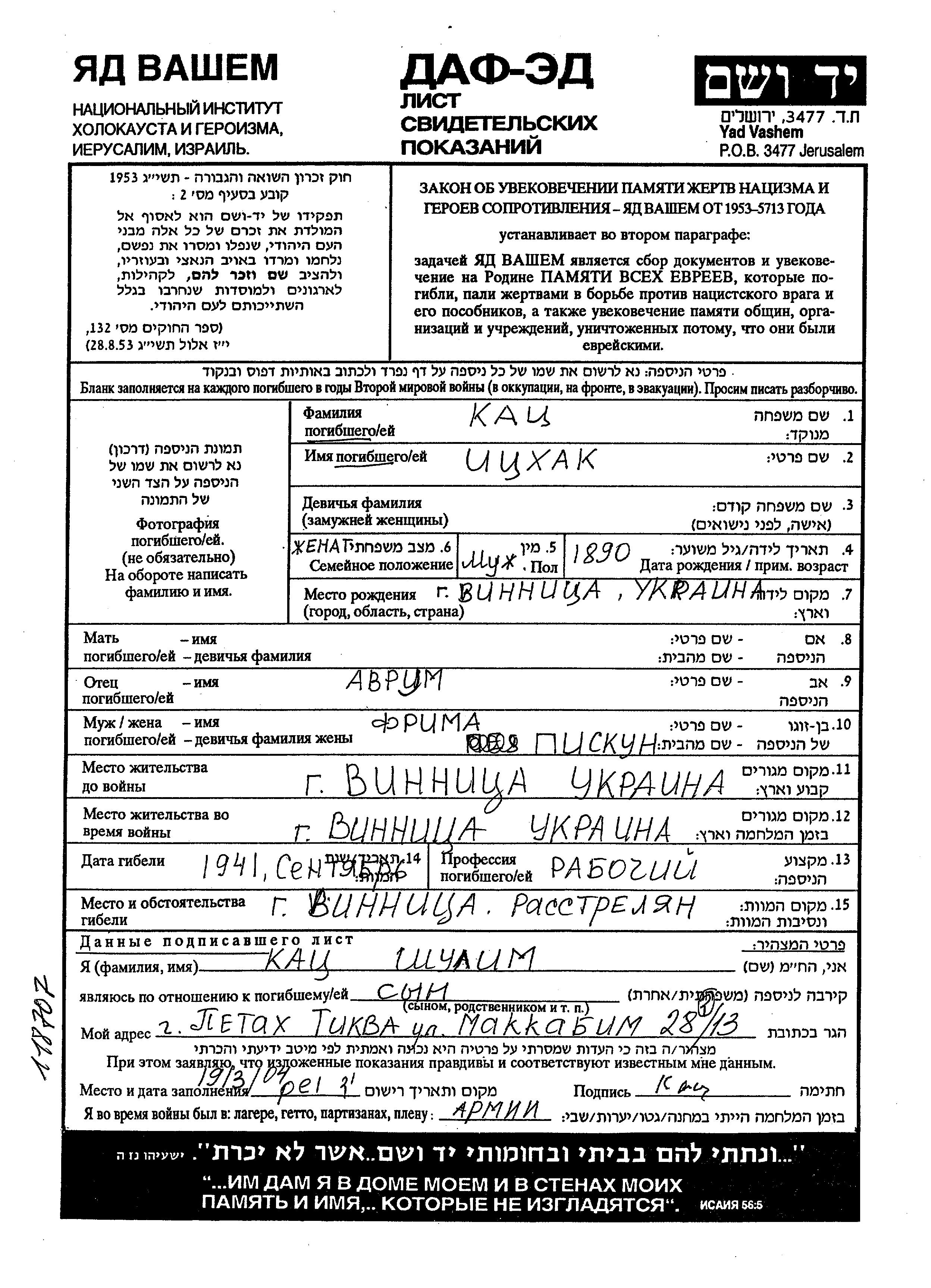 חיפוש שם מוסר דף העד. חיפוש לפי כל שם פרטי, כולל כינוי או שם חיבה