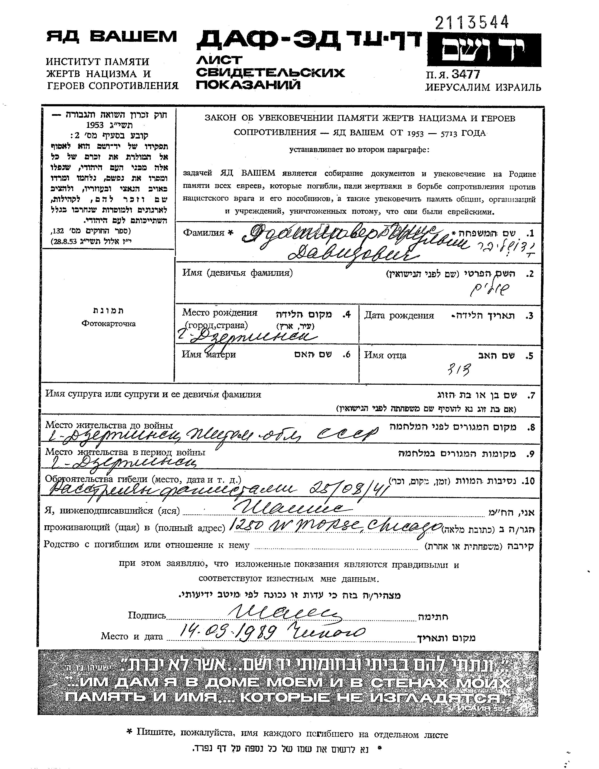 יד ושם - המפעל להנצחת השמות בדפי עד