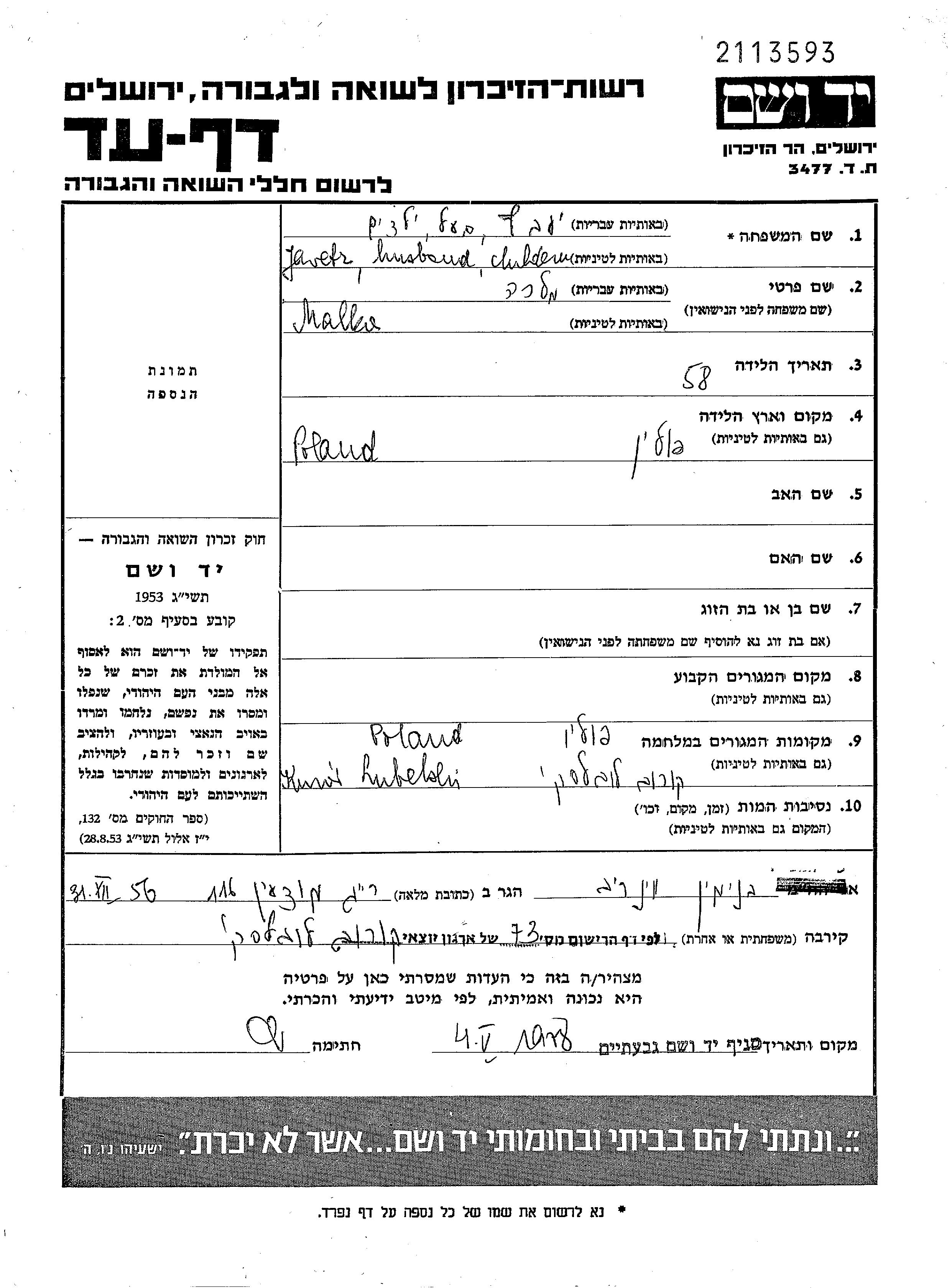 יד ושם - המפעל להנצחת השמות בדפי עד