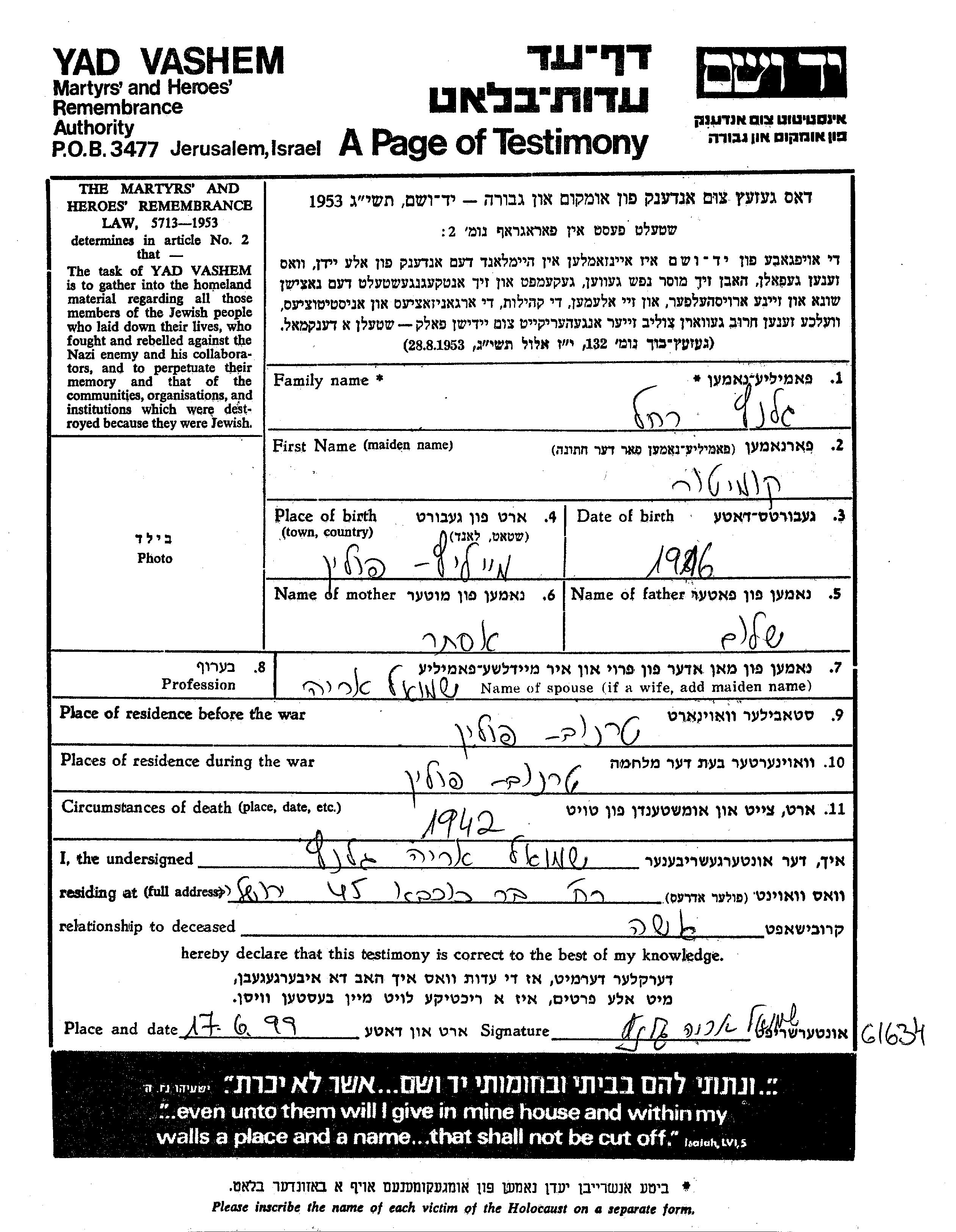 יד ושם - המפעל להנצחת השמות בדפי עד
