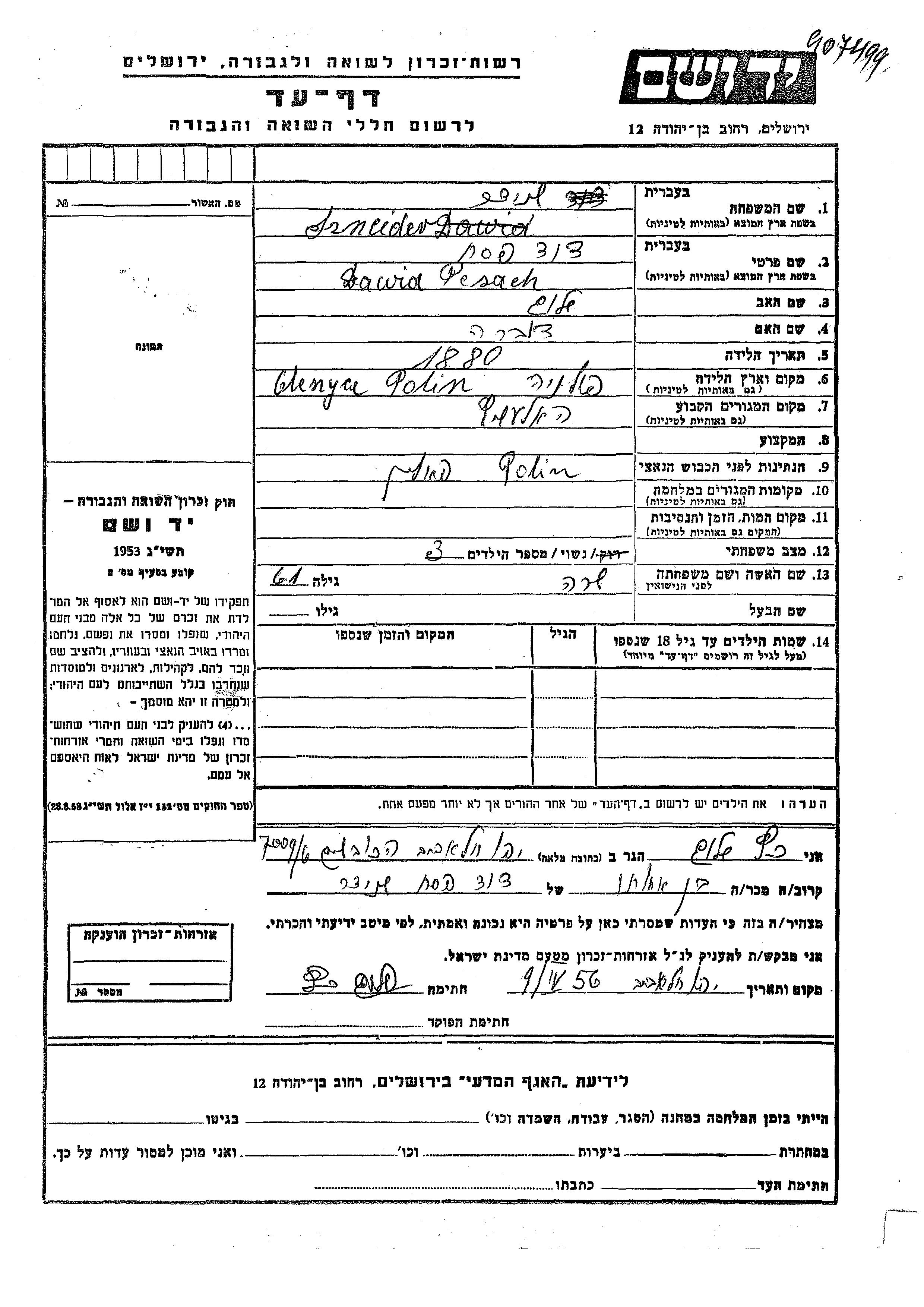 יד ושם - המפעל להנצחת השמות בדפי עד