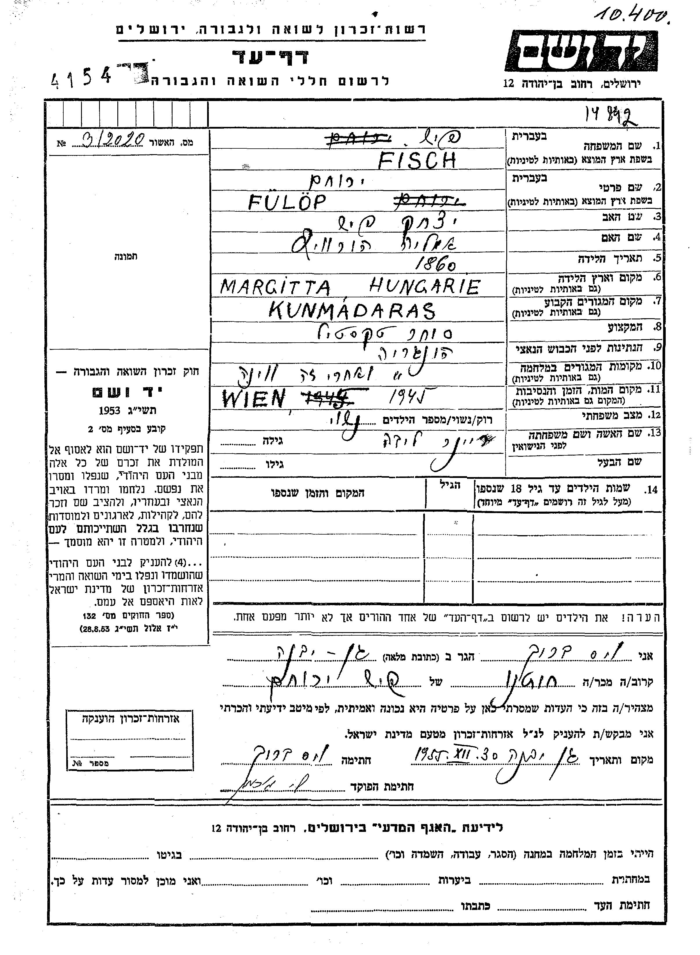 Fisch Fulop ירוחם 1860 Kunmadaras, הונגריה דף-עד