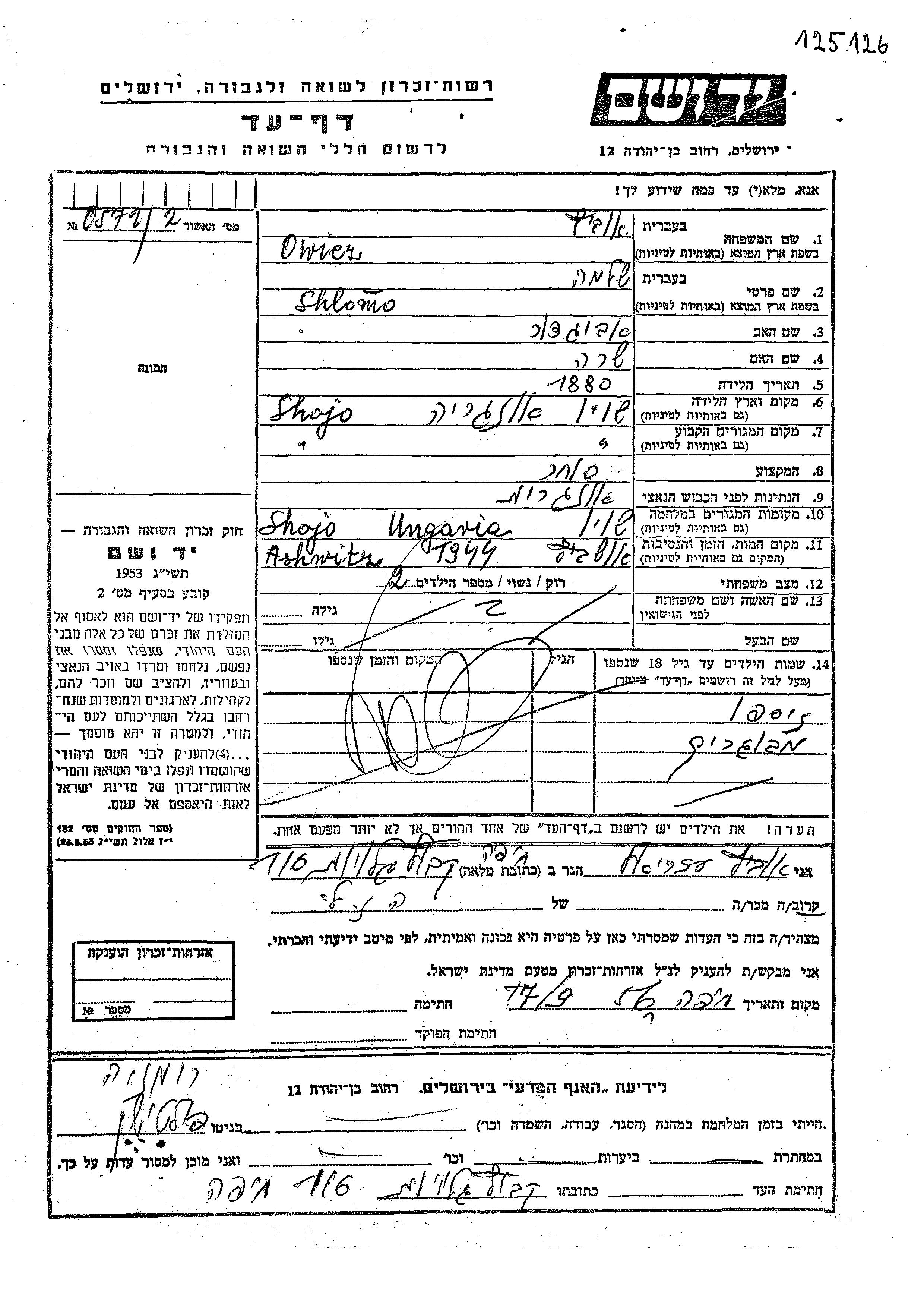 שלמה נרצח בשואה. מקום המוות: Auschwitz שבפולין בשנת 1944.