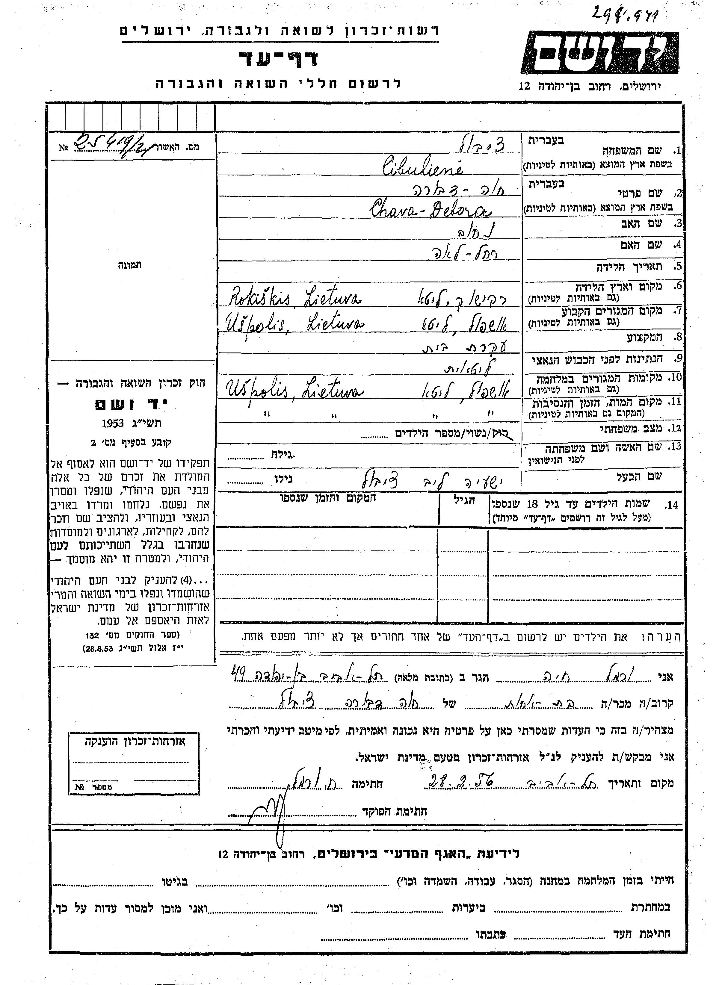 יד ושם - המפעל להנצחת השמות בדפי עד