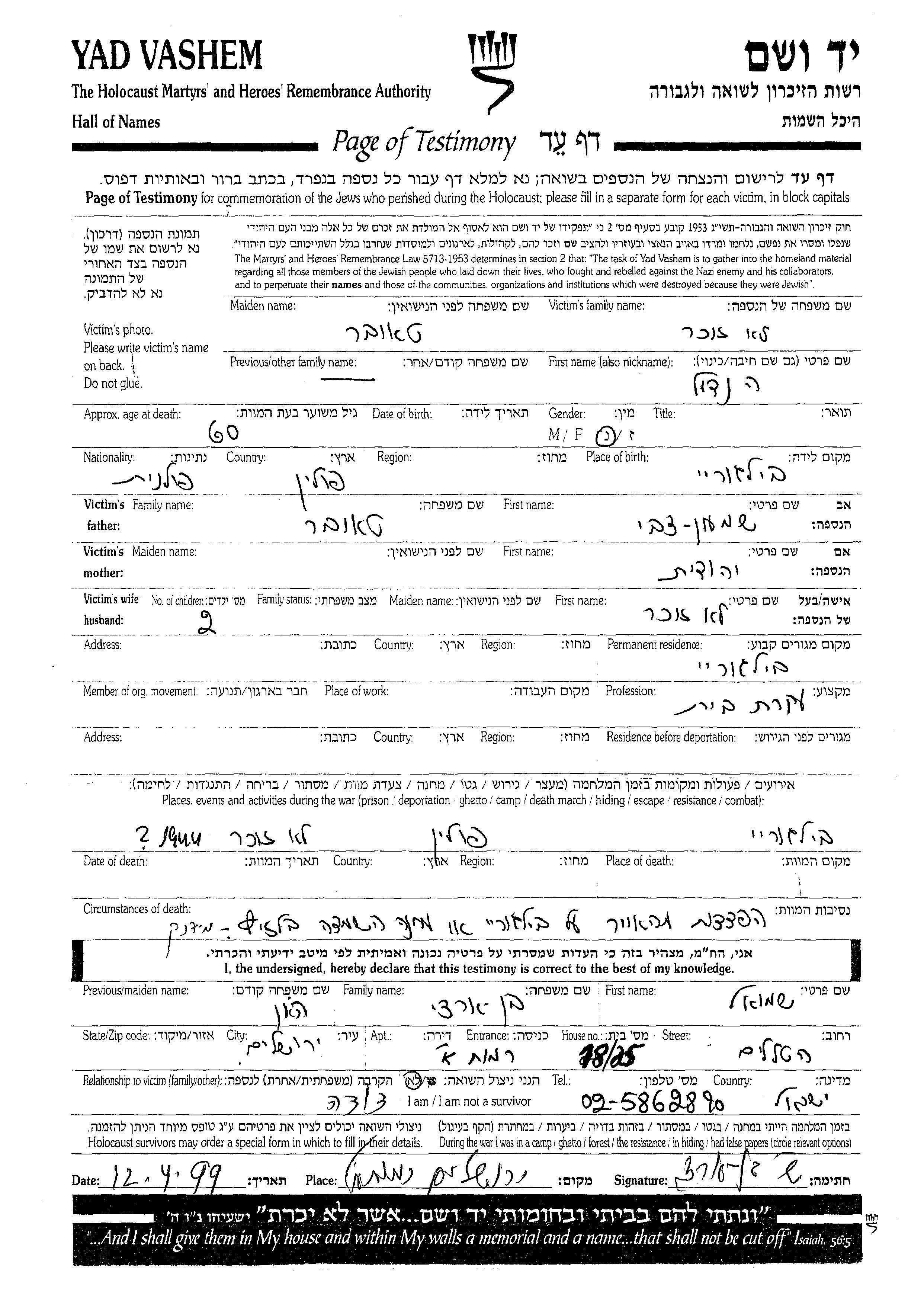 יד ושם - המפעל להנצחת השמות בדפי עד