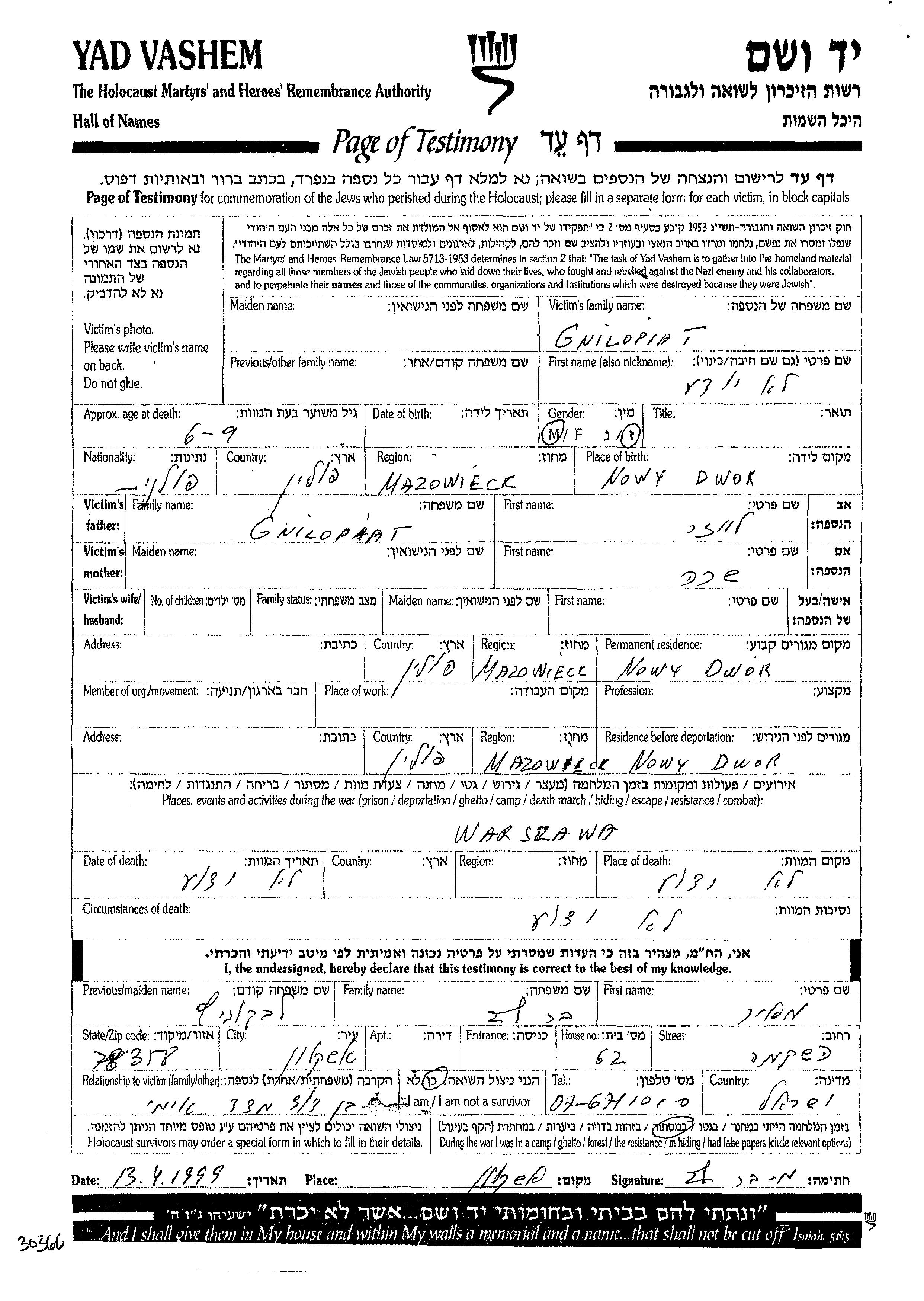 Search by name of any place during the Holocaust period: Town,Village, Camp, Ghetto, District, Region or Country