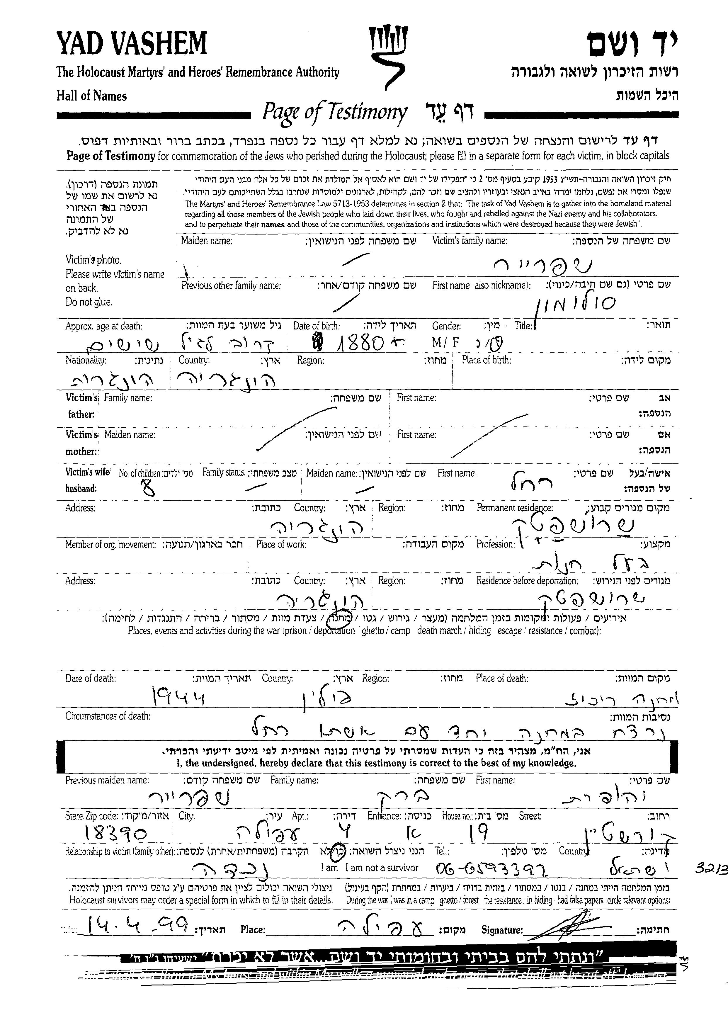 יד ושם - המפעל להנצחת השמות בדפי עד
