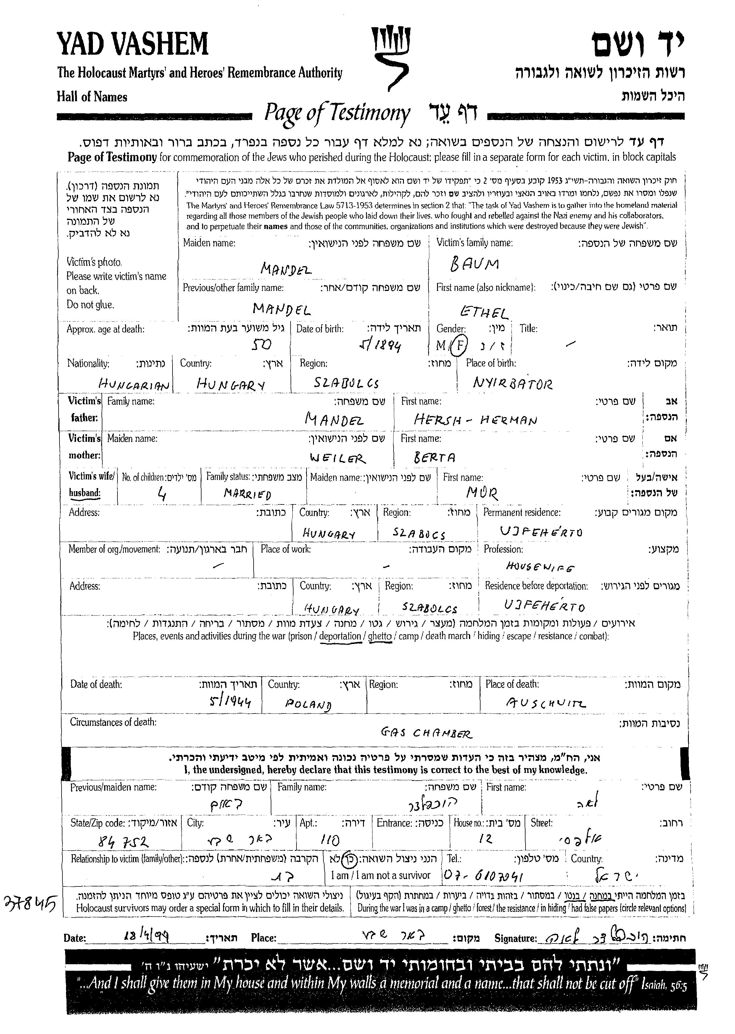 יד ושם - המפעל להנצחת השמות בדפי עד