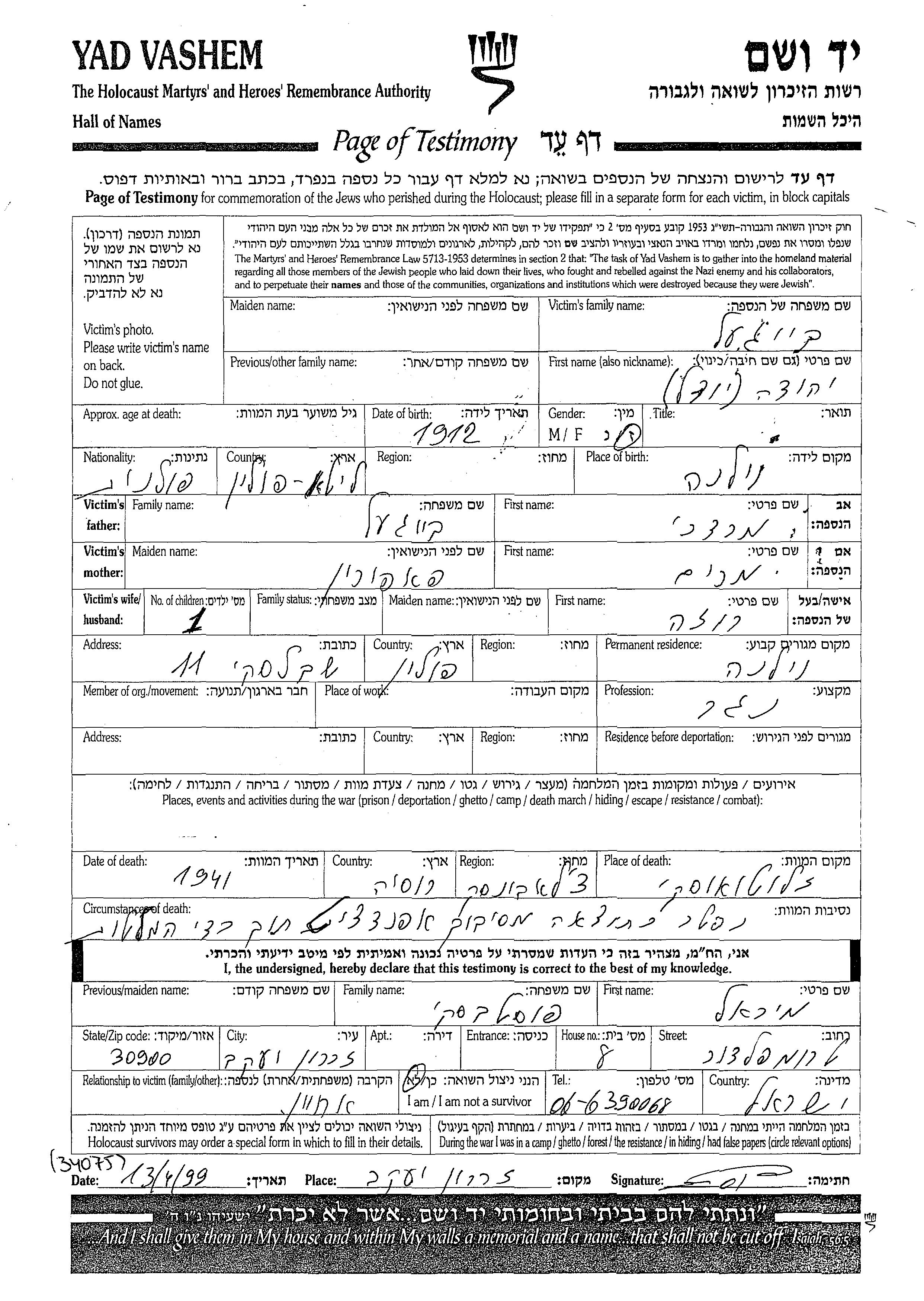 יד ושם - המפעל להנצחת השמות בדפי עד