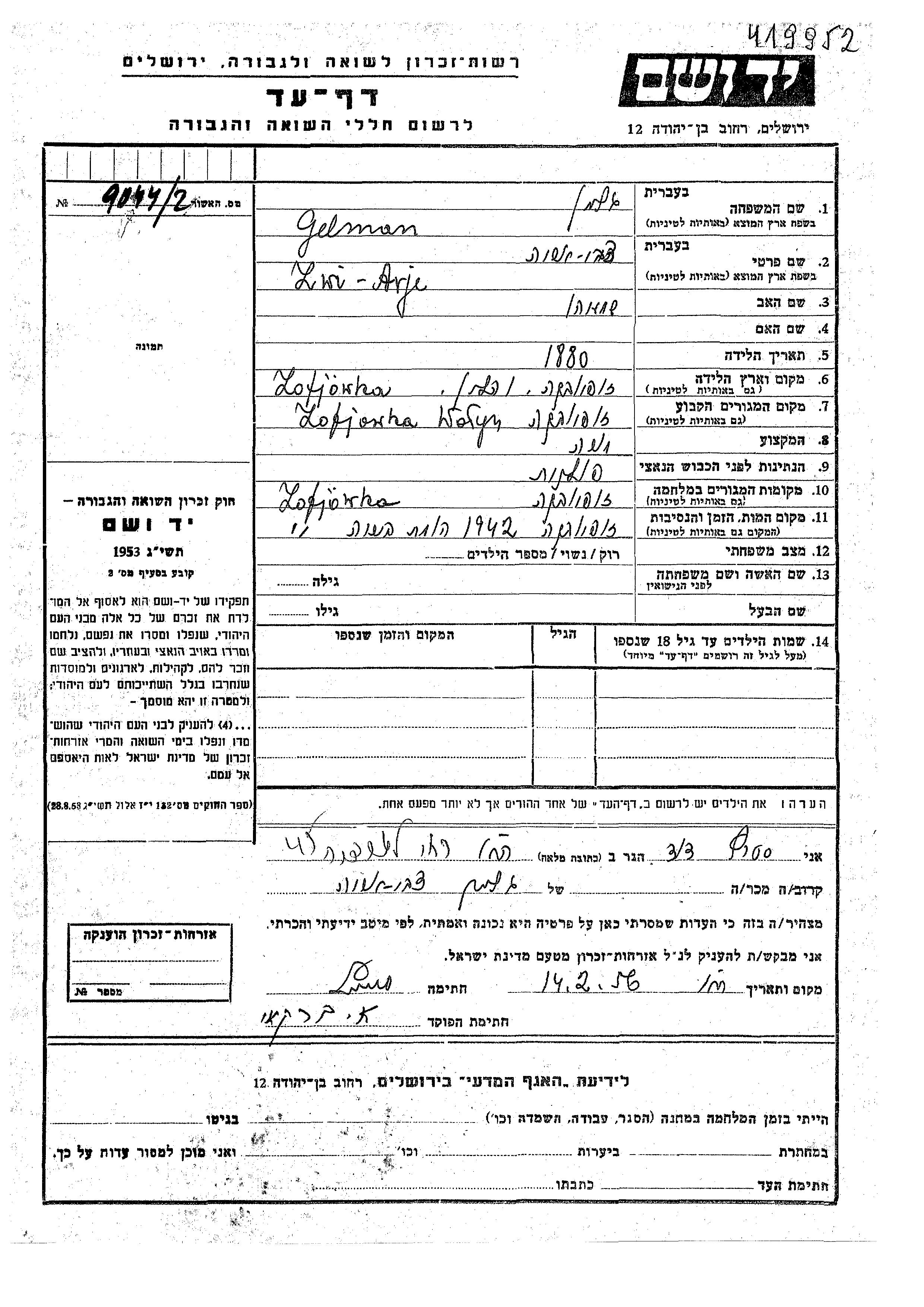 חיפוש שם מוסר דף העד. חיפוש לפי כל שם פרטי, כולל כינוי או שם חיבה